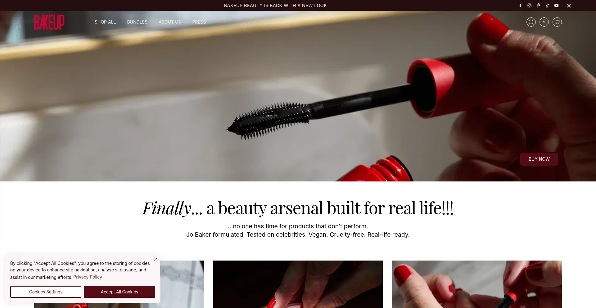 网站上存在社交媒体链接表明 bakeupbeauty.com 在社交媒体上维护官方账户,这是可信度和参与度的积极信号。