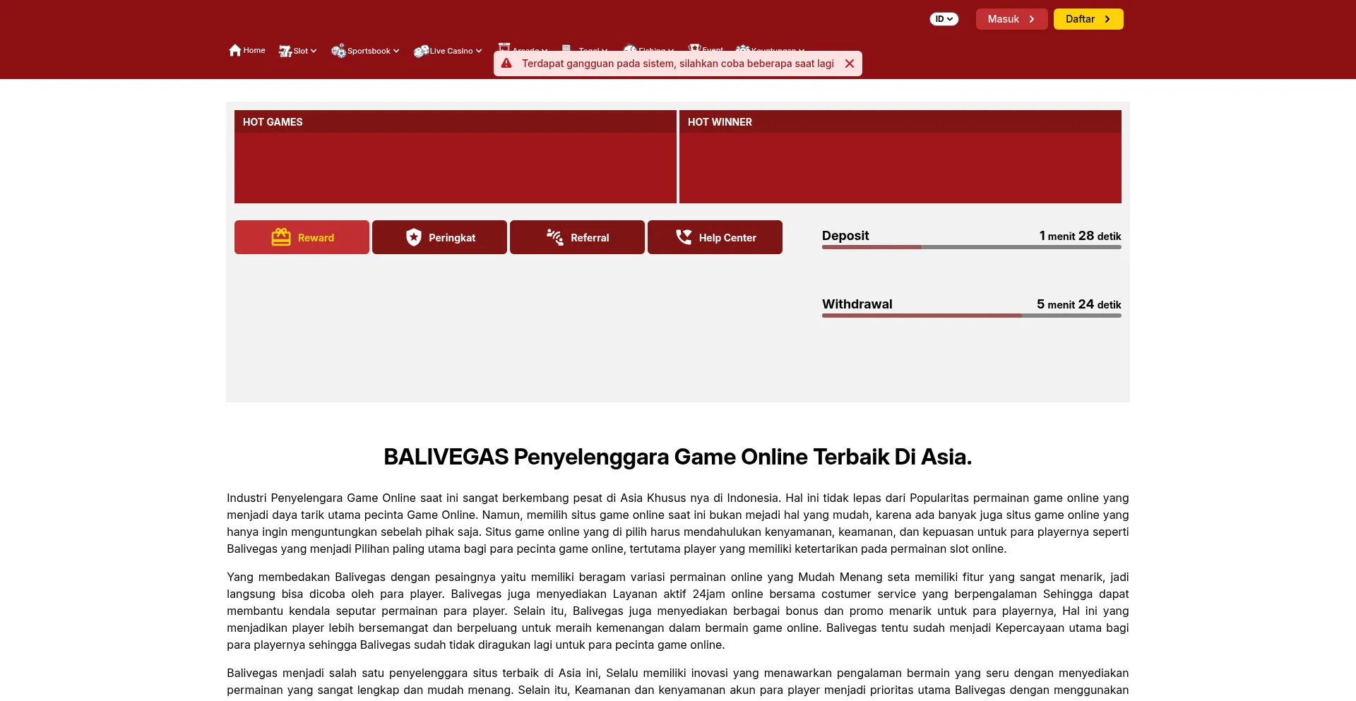 Balivegas adalah platform game online yang menghadirkan berbagai pilihan game seru dan menantang. Daftar dan nikmati pengalaman bermain game tanpa batas!