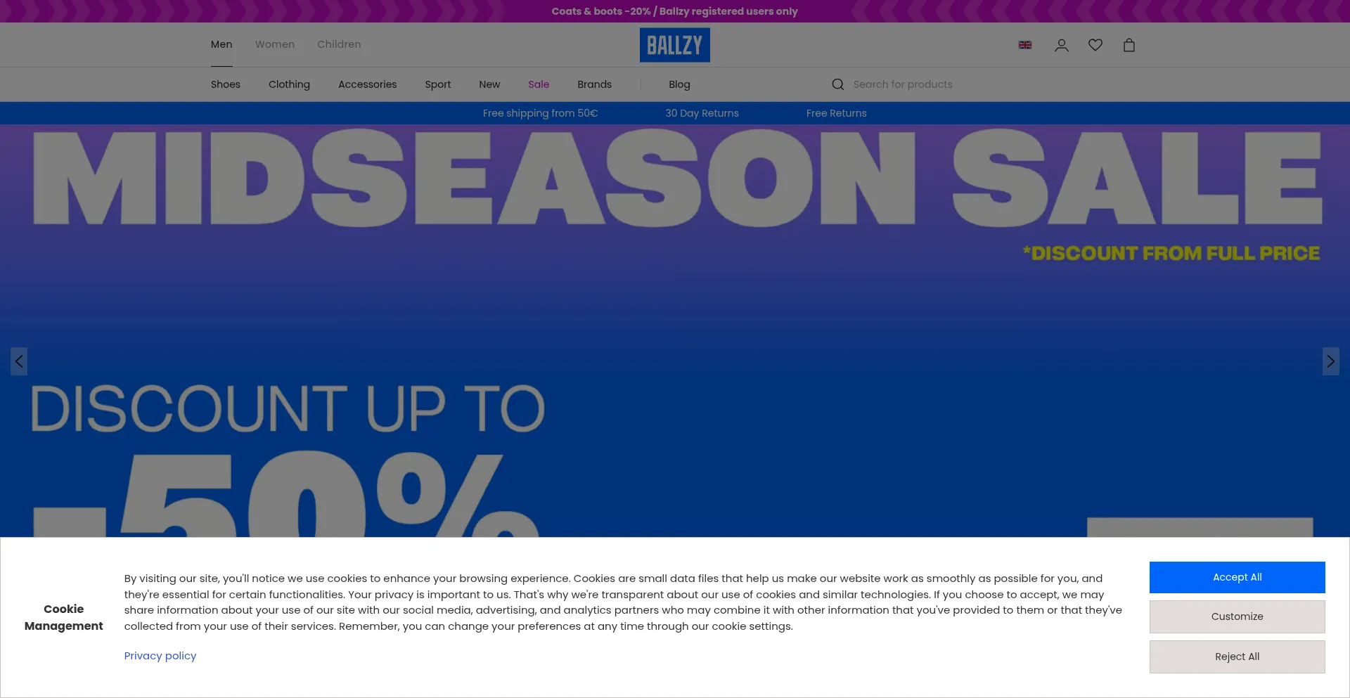 该网站实现符合GDPR或CCPA等隐私法规的cookie同意机制。这表明 ballzy.eu 遵守数据保护标准并为用户提供对个人数据收集实践的控制。