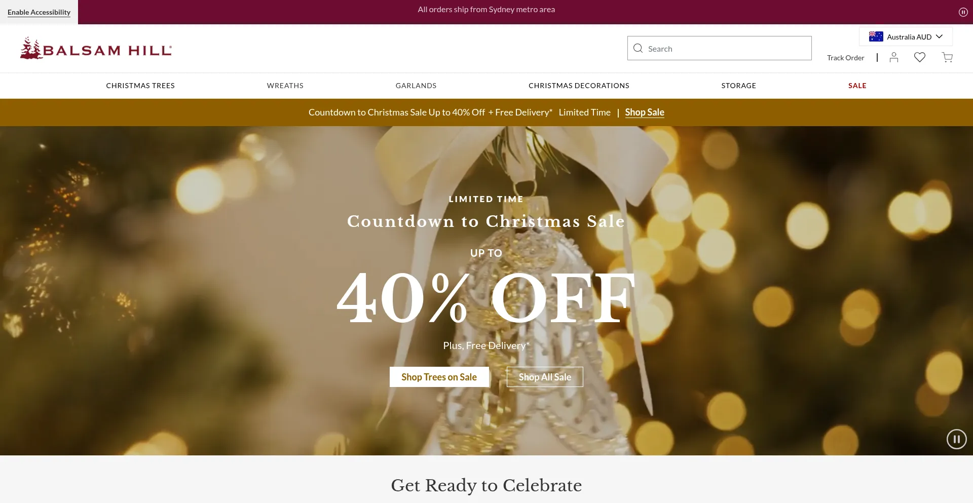 分析表明 balsamhill.com.au 作为电子商务平台运营,促进商品或服务的在线交易。该网站实现了购物车功能、支付处理系统和产品目录功能,这些是商业零售运营的典型特征。