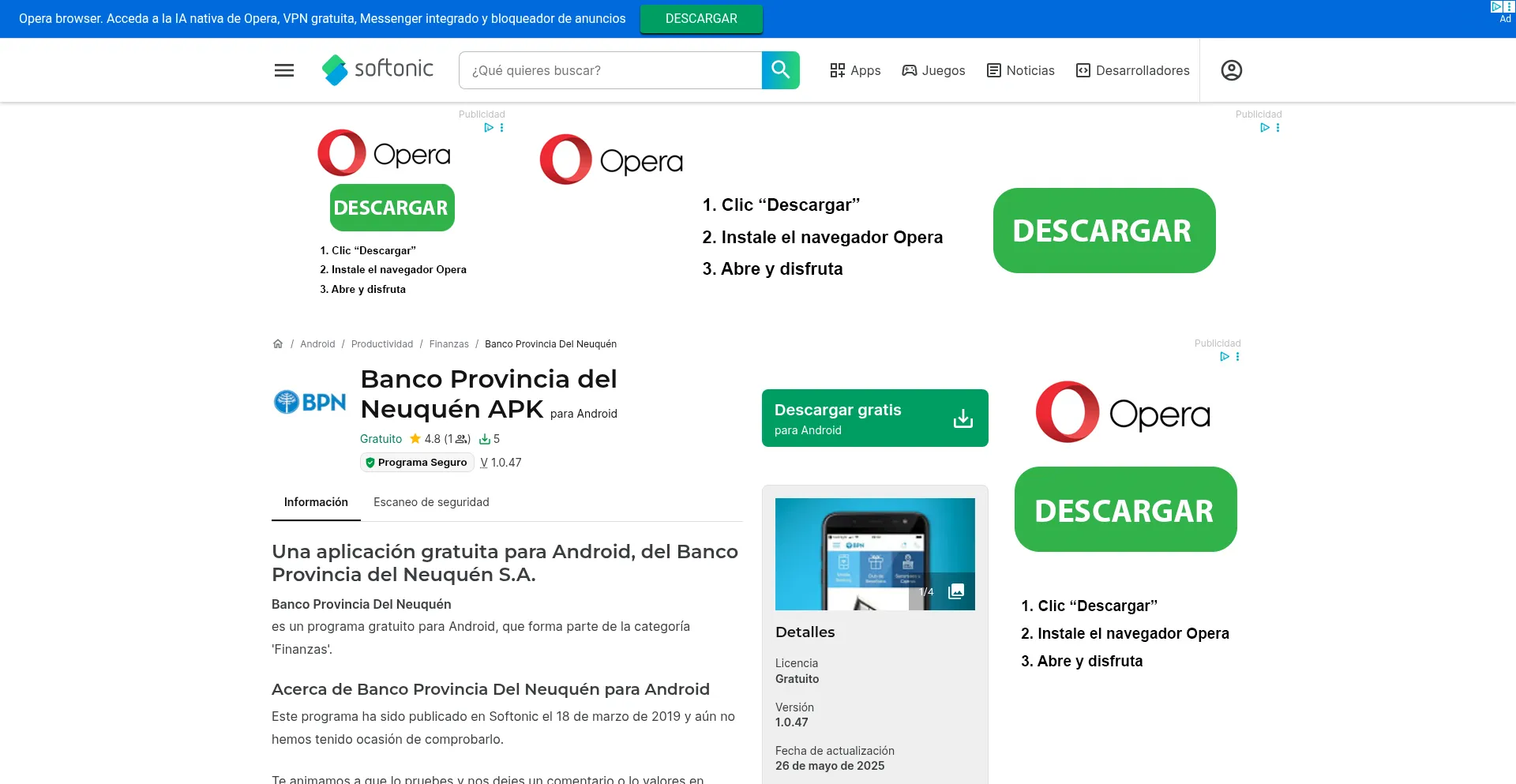 banco-provincia-del-neuquen.softonic.com 提供 Android 设备移动应用程序,表明平台存在已扩展到网络服务之外。