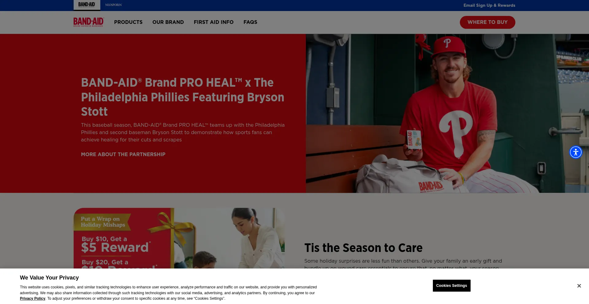 该网站实现符合GDPR或CCPA等隐私法规的cookie同意机制。这表明 band-aid.com 遵守数据保护标准并为用户提供对个人数据收集实践的控制。
