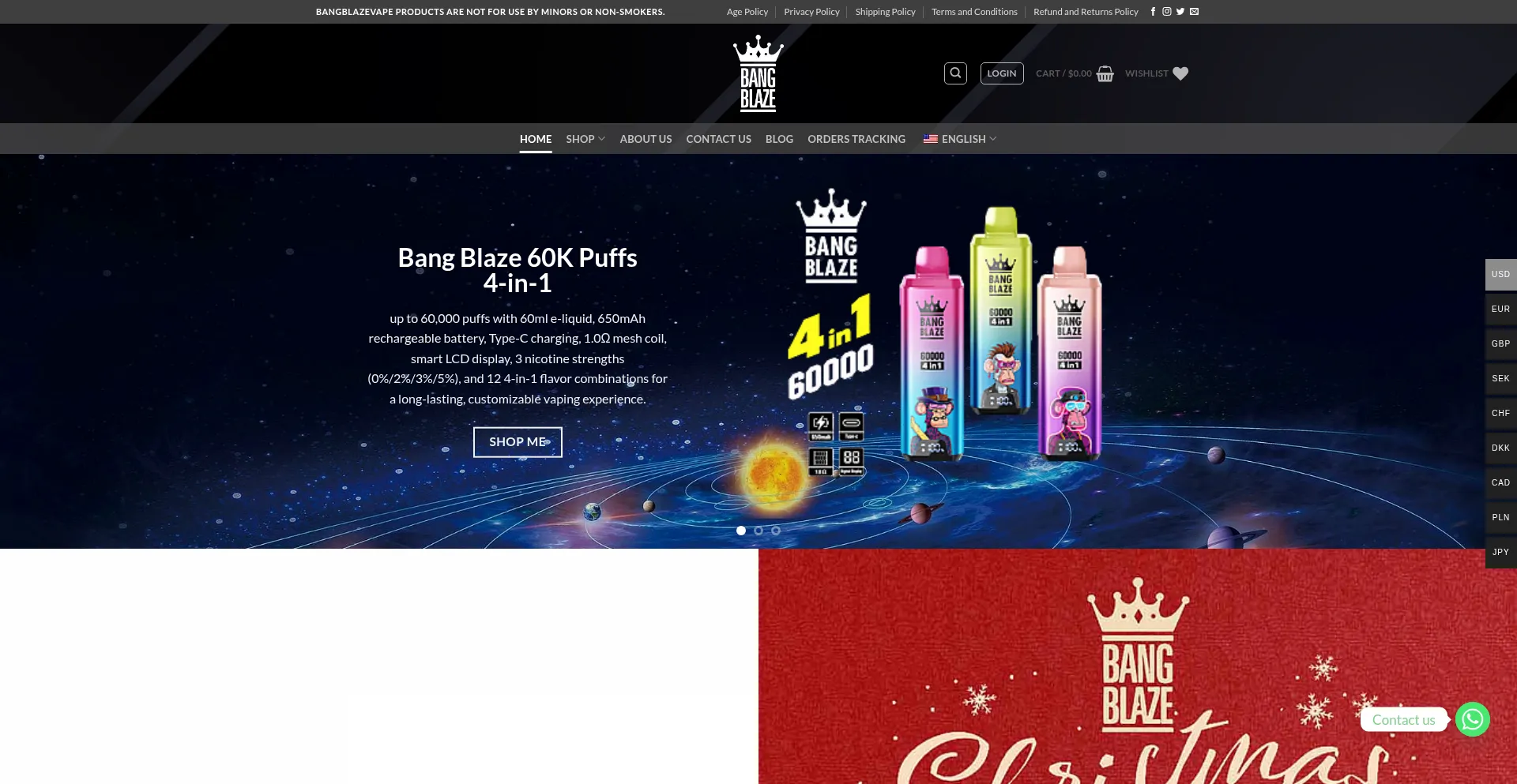 分析表明 bangblazevape.com 作为电子商务平台运营,促进商品或服务的在线交易。该网站实现了购物车功能、支付处理系统和产品目录功能,这些是商业零售运营的典型特征。