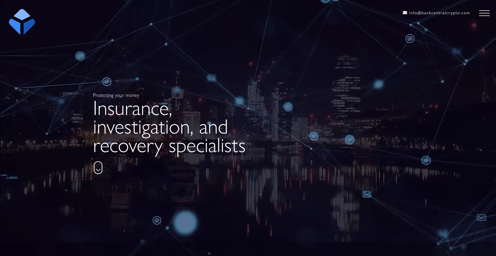 网站 bankcentralcrypto.com 宣传针对丢失或被盗资产的资金恢复服务。虽然一些在应急费用结构上运营,其他可能需要预付款,这可能表明欺诈运营。在聘请此类服务前验证凭据和监管合规性。