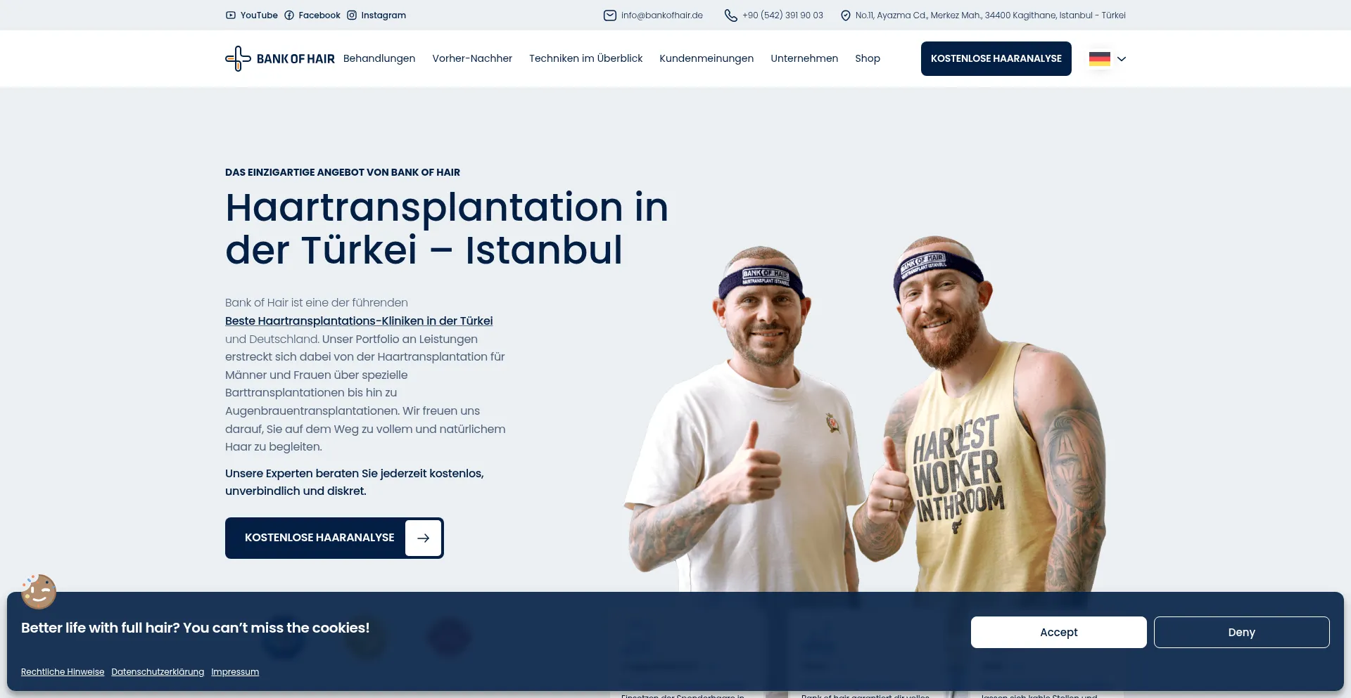网站上存在社交媒体链接表明 bankofhair.de 在社交媒体上维护官方账户,这是可信度和参与度的积极信号。