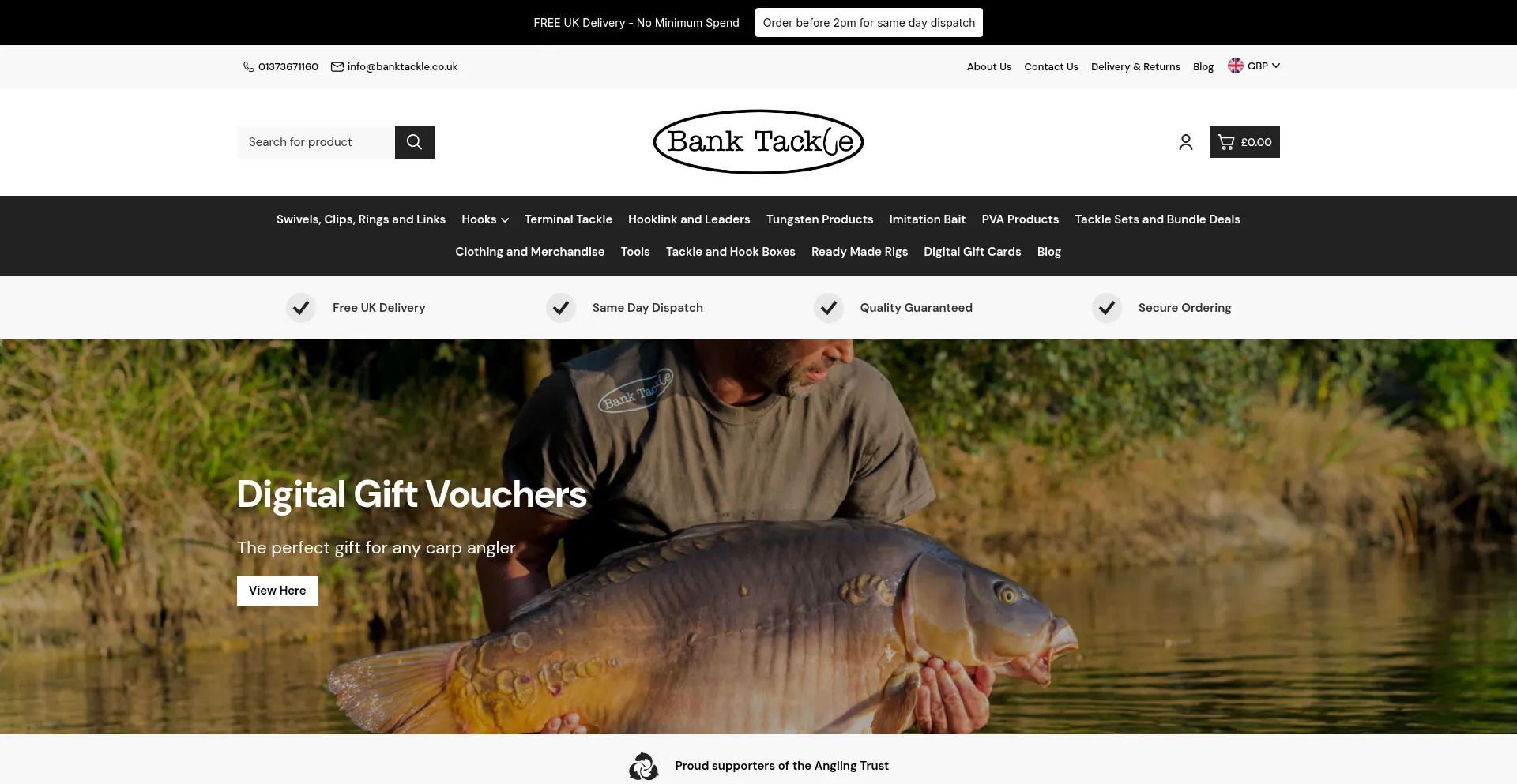 Bank Tackle Provide High Quality Carp Terminal Tackle at Low End Prices. We Stock a Huge Range of Rig Making Components Such as Swivels, Hooks, Hooklinks, Tungsten, PVA and More...