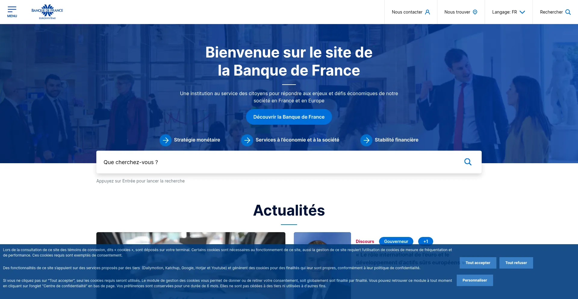 网站上存在社交媒体链接表明 banque-france.fr 在社交媒体上维护官方账户,这是可信度和参与度的积极信号。
