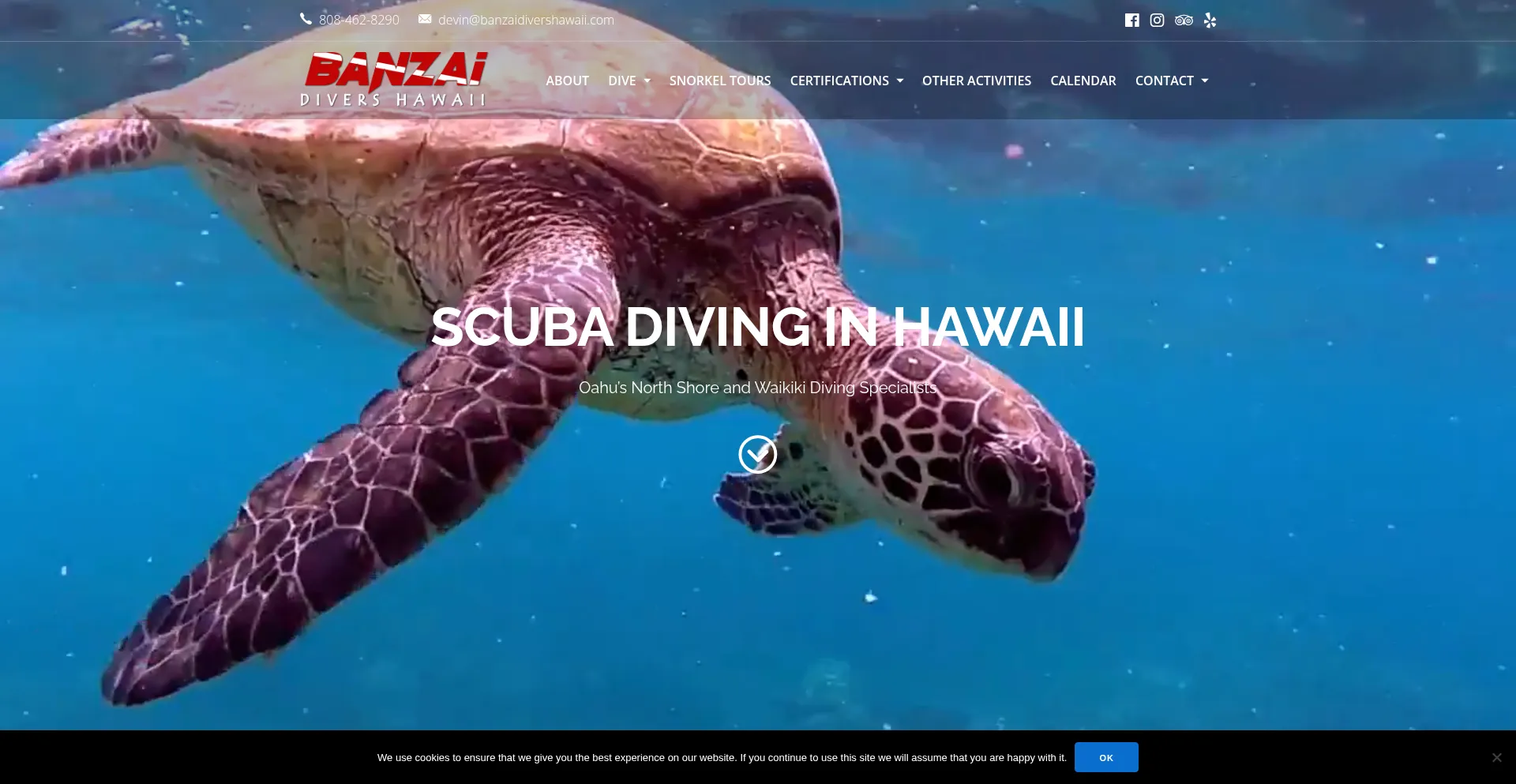 网站上存在社交媒体链接表明 banzaidivershawaii.com 在社交媒体上维护官方账户,这是可信度和参与度的积极信号。