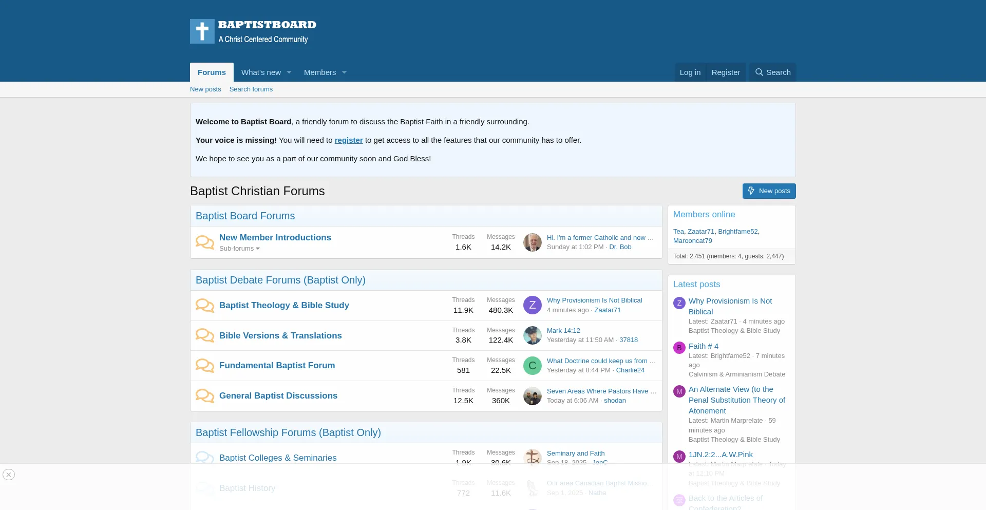 Baptist Board is the largest Baptist Christian forums online dedicated to providing information and discussion on the Baptist faith, as well as Christianity...