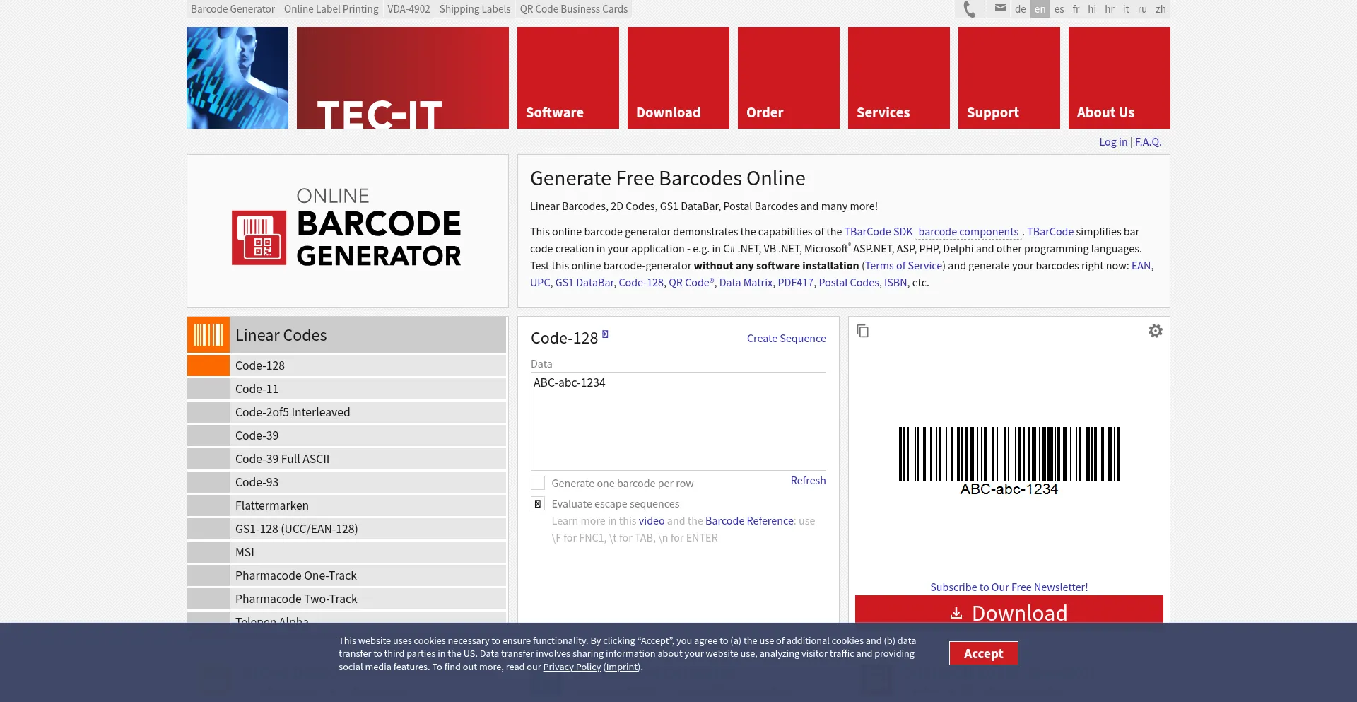 Linear Barcodes, 2D Codes, GS1 DataBar, Postal Barcodes and many more!