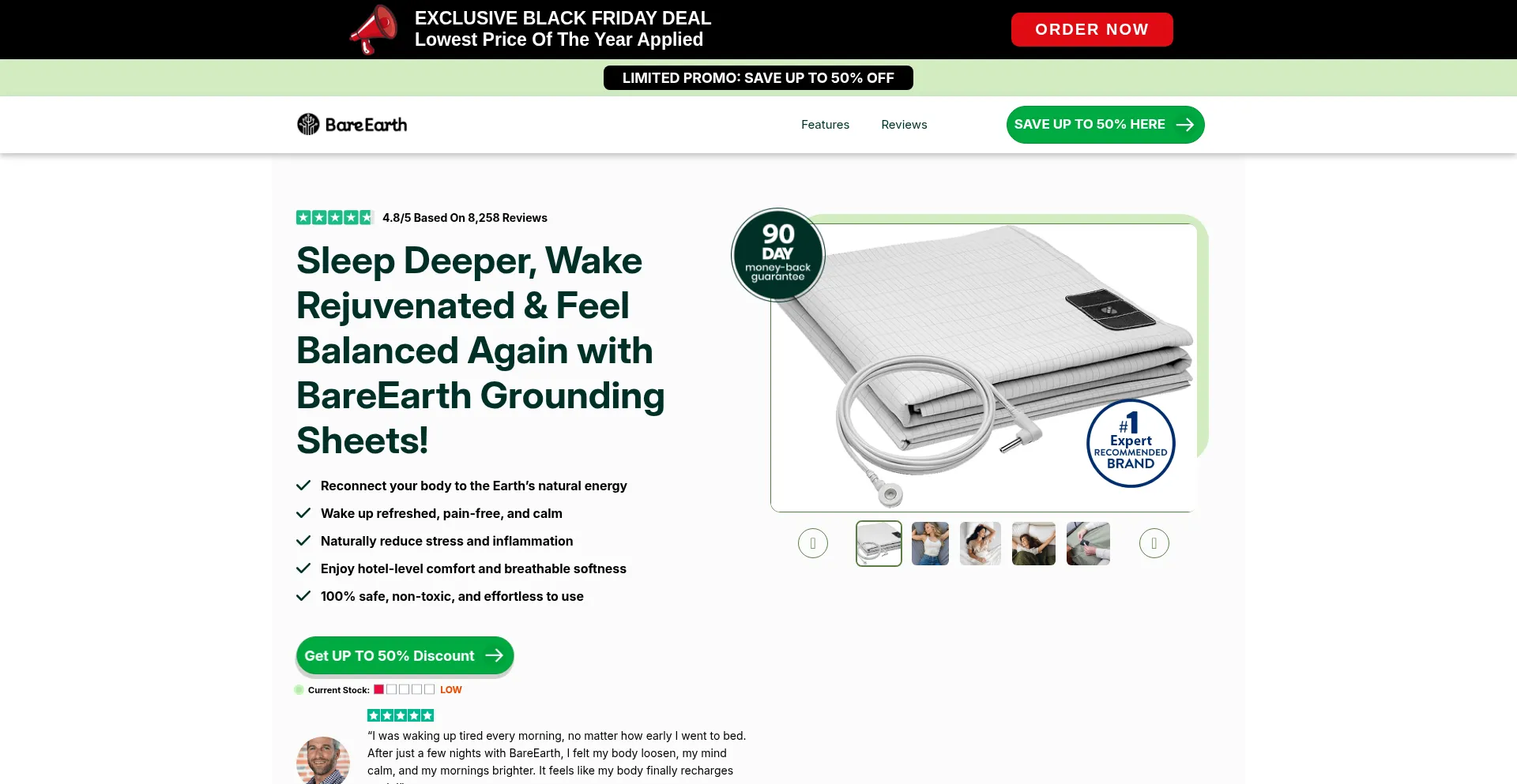 BareEarth Grounding Sheets reconnect you to Earth’s energy for calm, pain-free mornings. Save 50%!