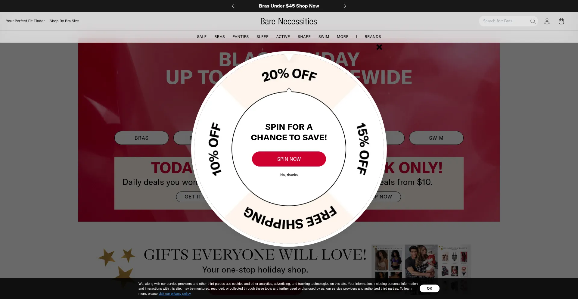 该网站实现符合GDPR或CCPA等隐私法规的cookie同意机制。这表明 barenecessities.com 遵守数据保护标准并为用户提供对个人数据收集实践的控制。
