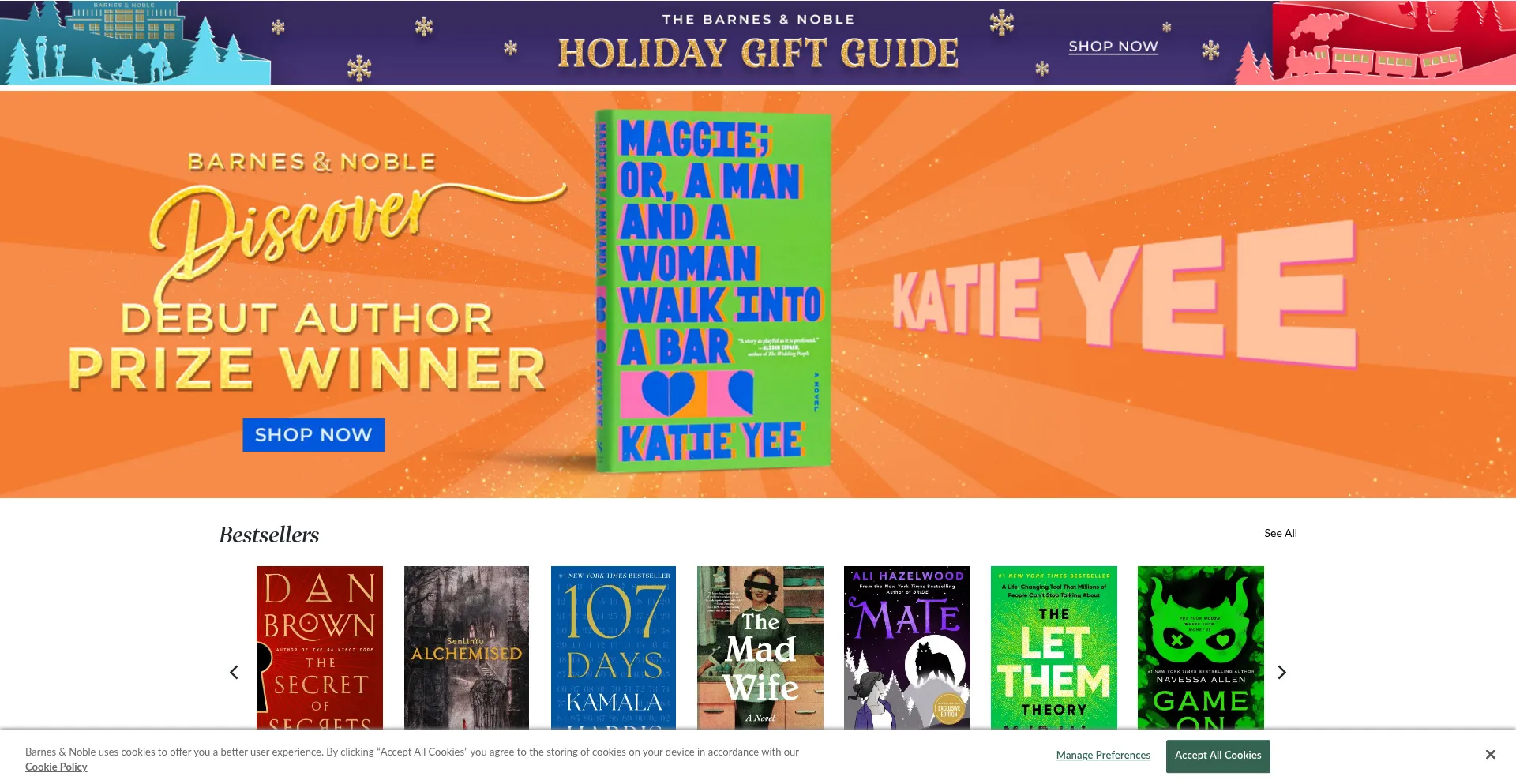 该网站实现符合GDPR或CCPA等隐私法规的cookie同意机制。这表明 barnesandnoble.com 遵守数据保护标准并为用户提供对个人数据收集实践的控制。