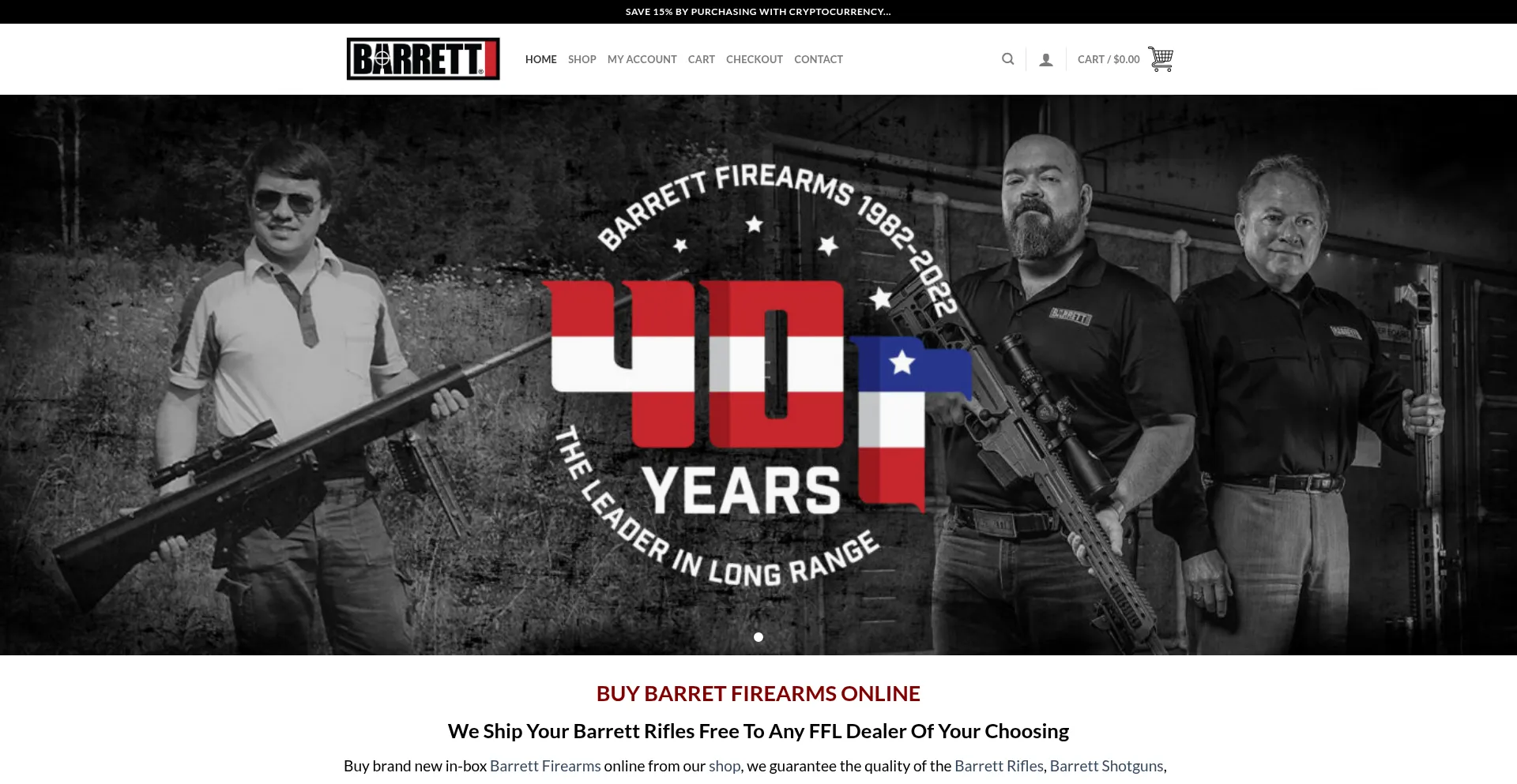 Buy brand new in-box Barrett Firearms online from our shop, we guarantee the quality of the Barrett Rifles, Barrett Shotguns, Barrett Ammunitions and other