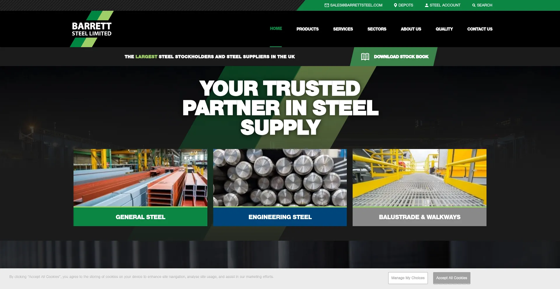 网站上存在社交媒体链接表明 barrettsteel.com 在社交媒体上维护官方账户,这是可信度和参与度的积极信号。
