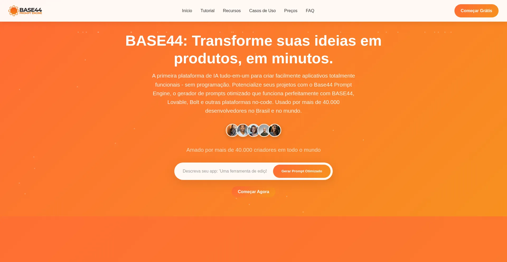 BASE44 é a primeira plataforma de IA do Brasil para criar aplicativos totalmente funcionais sem programação. Transforme suas ideias em produtos digitais em minutos. Experimen...