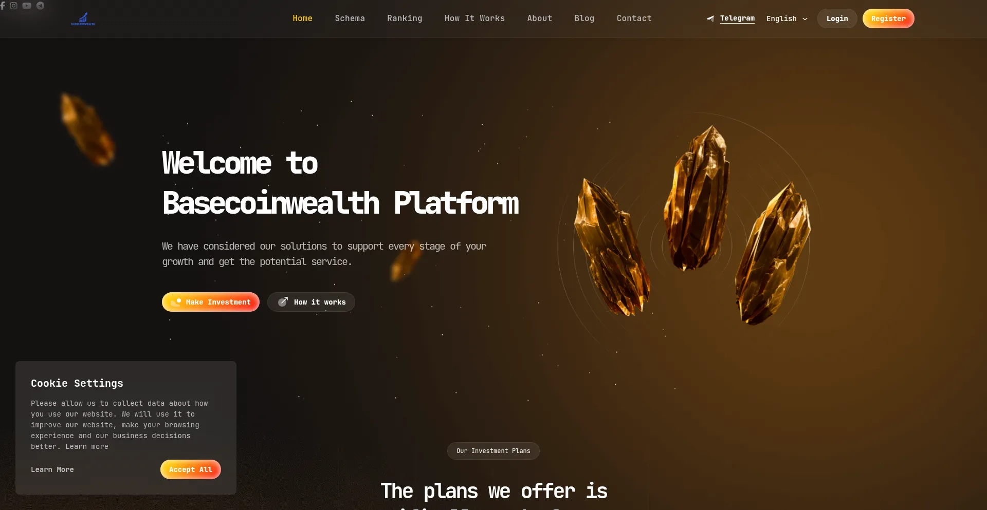 网站上存在社交媒体链接表明 basecoinwealth.com 在社交媒体上维护官方账户,这是可信度和参与度的积极信号。
