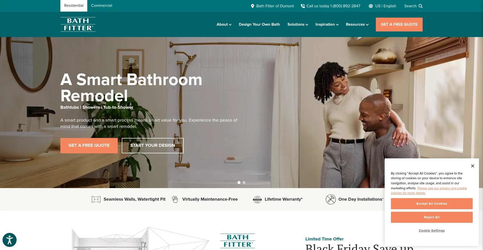 bathfitter.com 使用 Google Tag Manager 在其网站上添加和更新追踪代码(标签)。