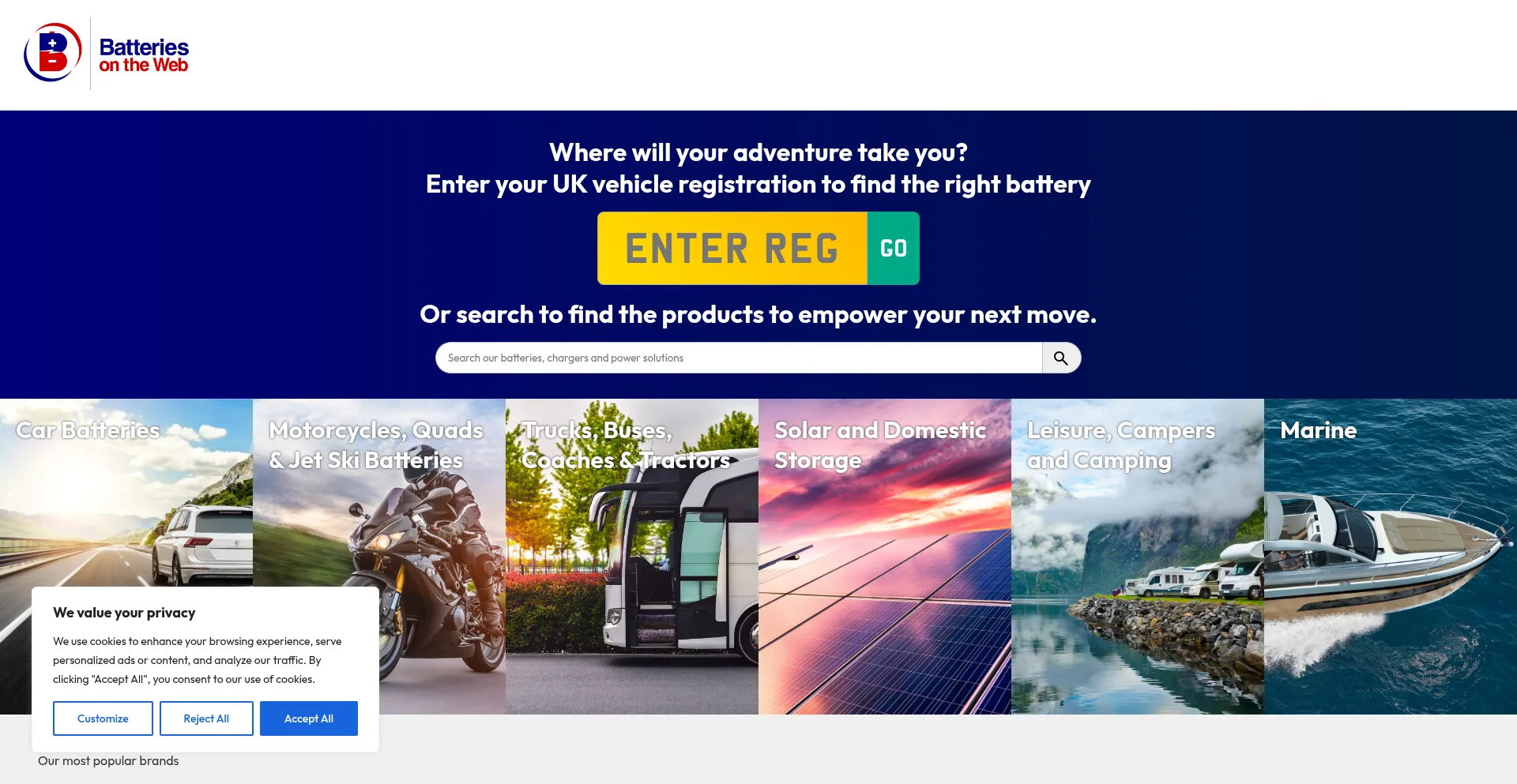 该网站实现符合GDPR或CCPA等隐私法规的cookie同意机制。这表明 batteriesontheweb.co.uk 遵守数据保护标准并为用户提供对个人数据收集实践的控制。