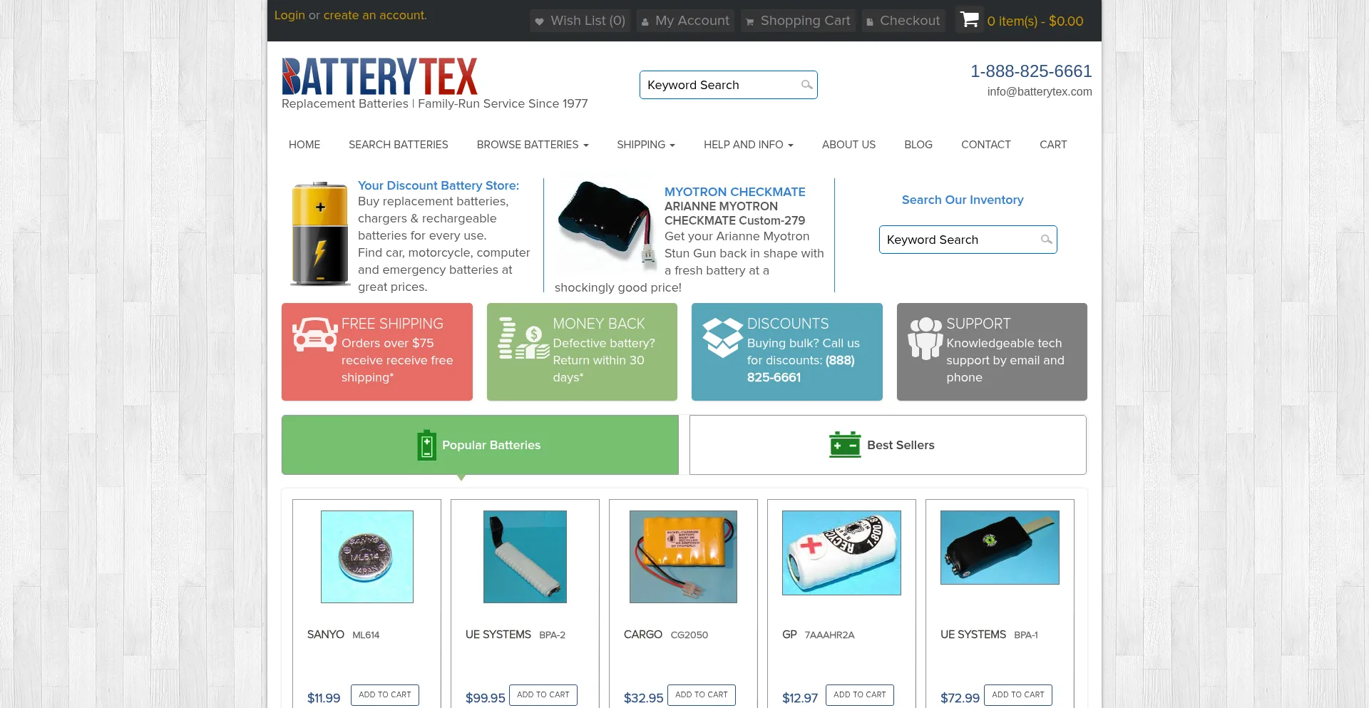BatteryTex sells replacement batteries for many applications, including laptops, medical devices, motorcycles, cars, trucks, cordless phones, battery chargers and much more.