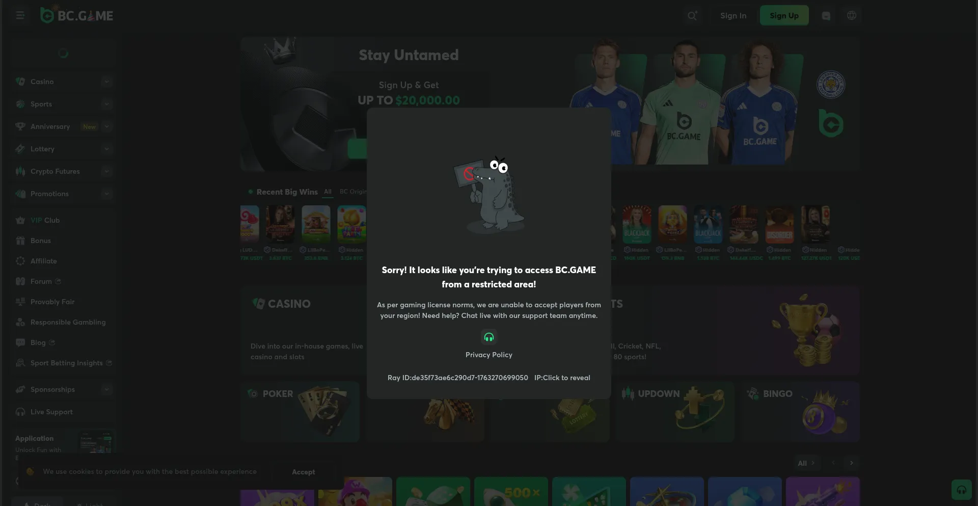 该网站实现符合GDPR或CCPA等隐私法规的cookie同意机制。这表明 bcgame.top 遵守数据保护标准并为用户提供对个人数据收集实践的控制。