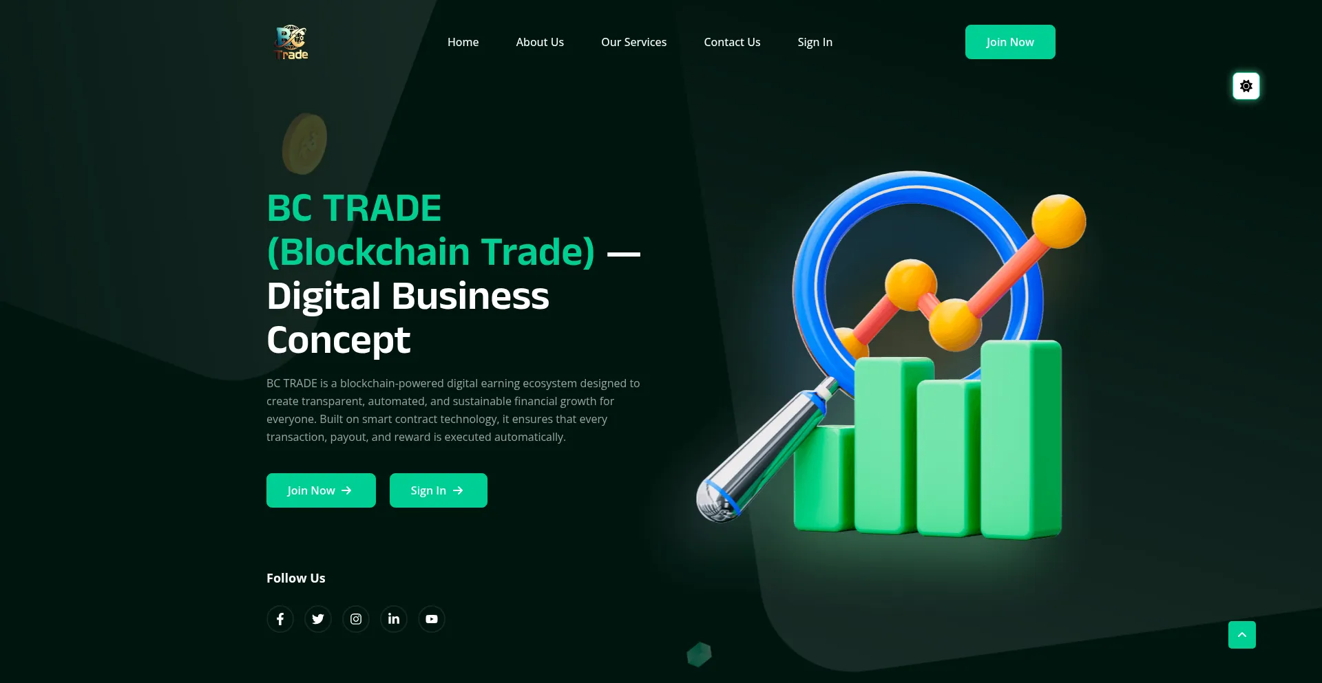 分析显示 bctrade.io 显示社交媒体图标或链接,但不连接到合法的社交媒体档案。这种欺骗性做法通常用于创造虚假合法性,代表需要立即谨慎的欺诈意图的重要指标。