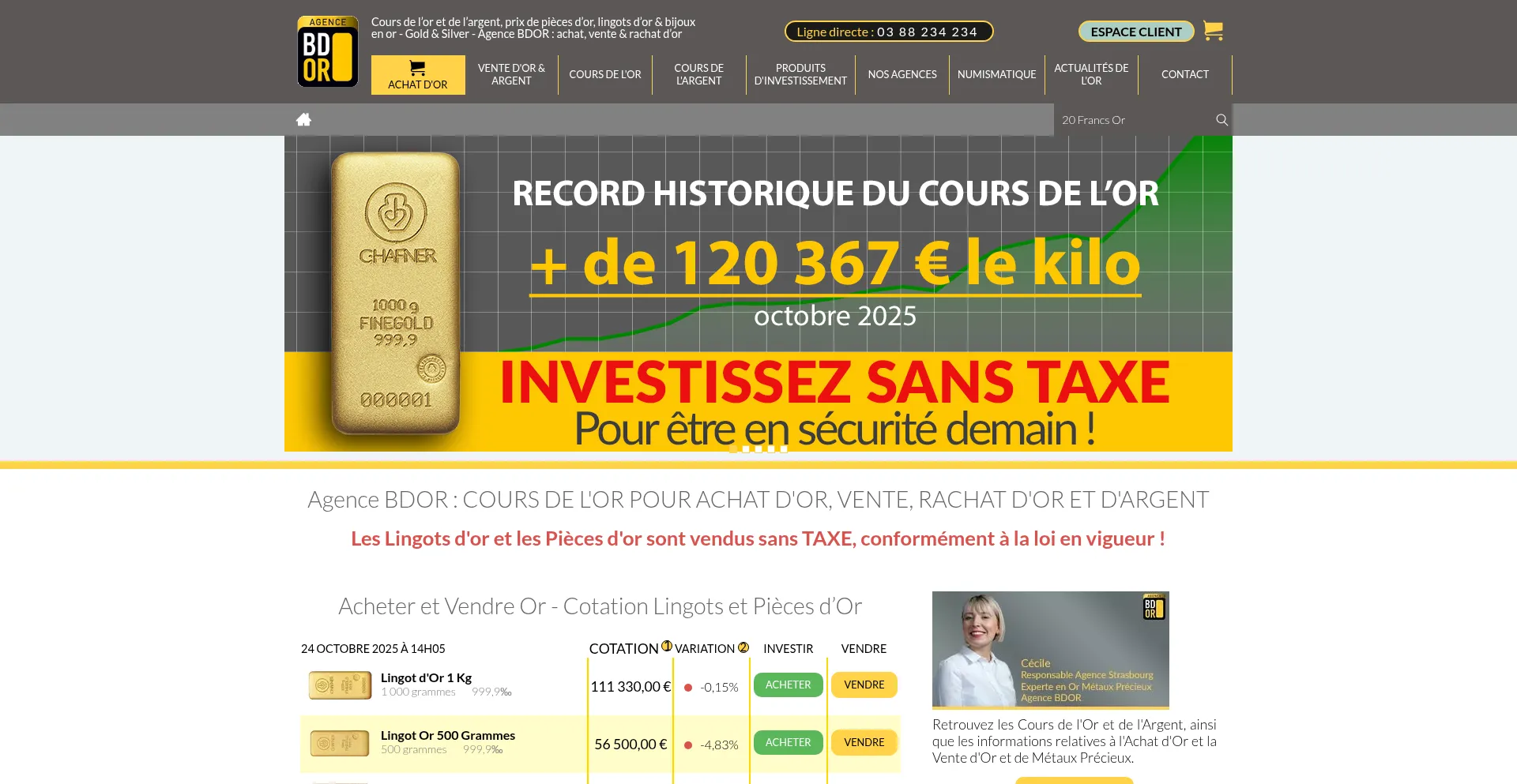 Achat, Vente et rachat d’or ainsi que d’argent – BDOR, agence indépendante #1 en cotation d’or et or d’investissement. Venez acheter ou vendre de l'Or & de l’Argent...