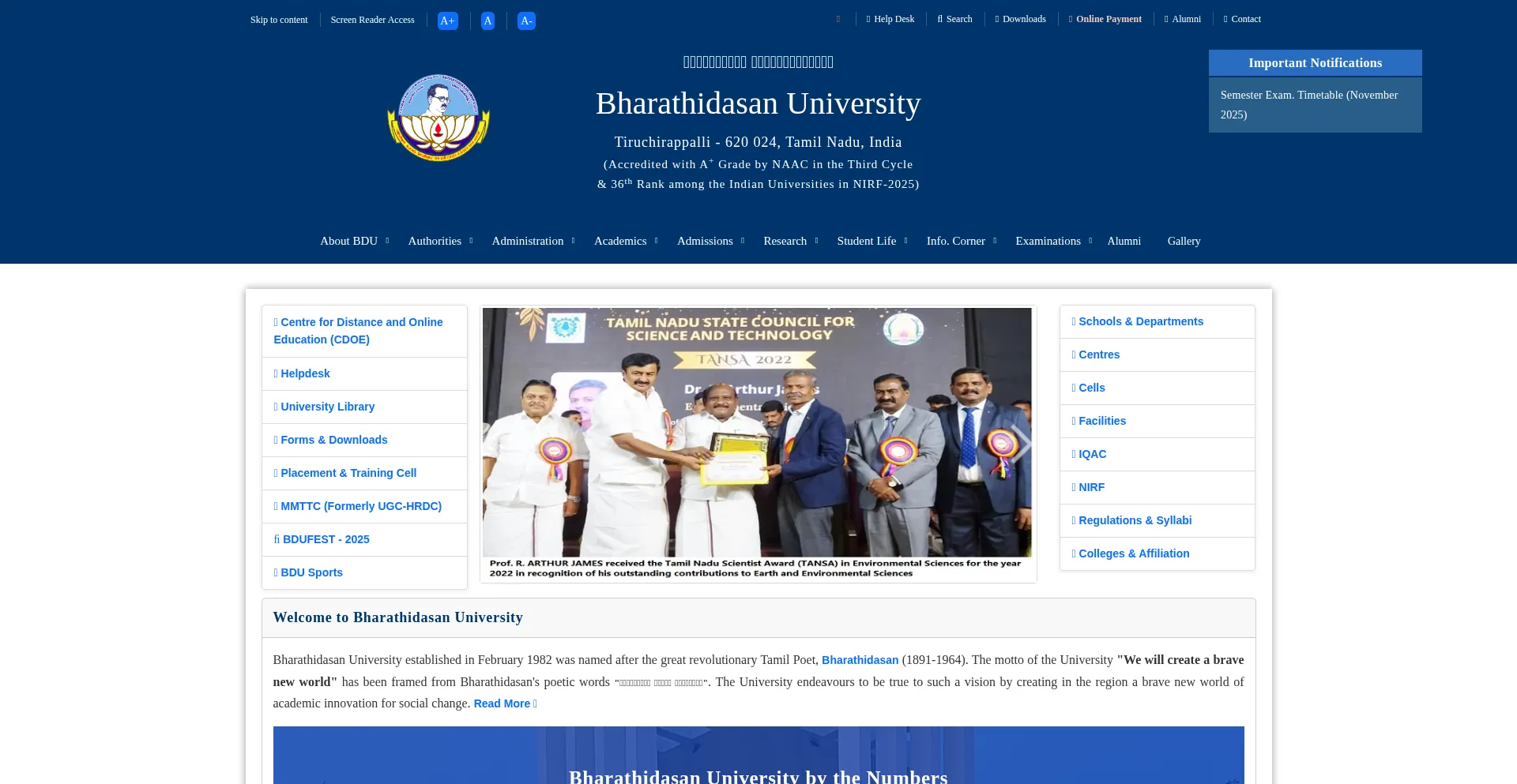 Official Website of Bharathidasan University, Tiruchirappalli, Tamil Nadu, India