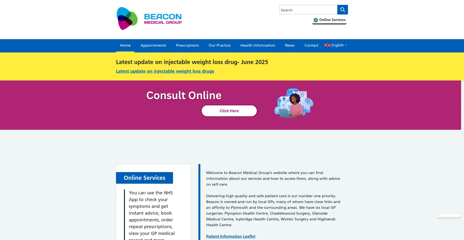 该网站实现数据收集表单,请求个人信息,包括姓名、电子邮件地址、电话号码或其他敏感详细信息。用户应验证 beaconmedicalgroup.nhs.uk 的合法性并在提交个人数据前查看隐私政策。