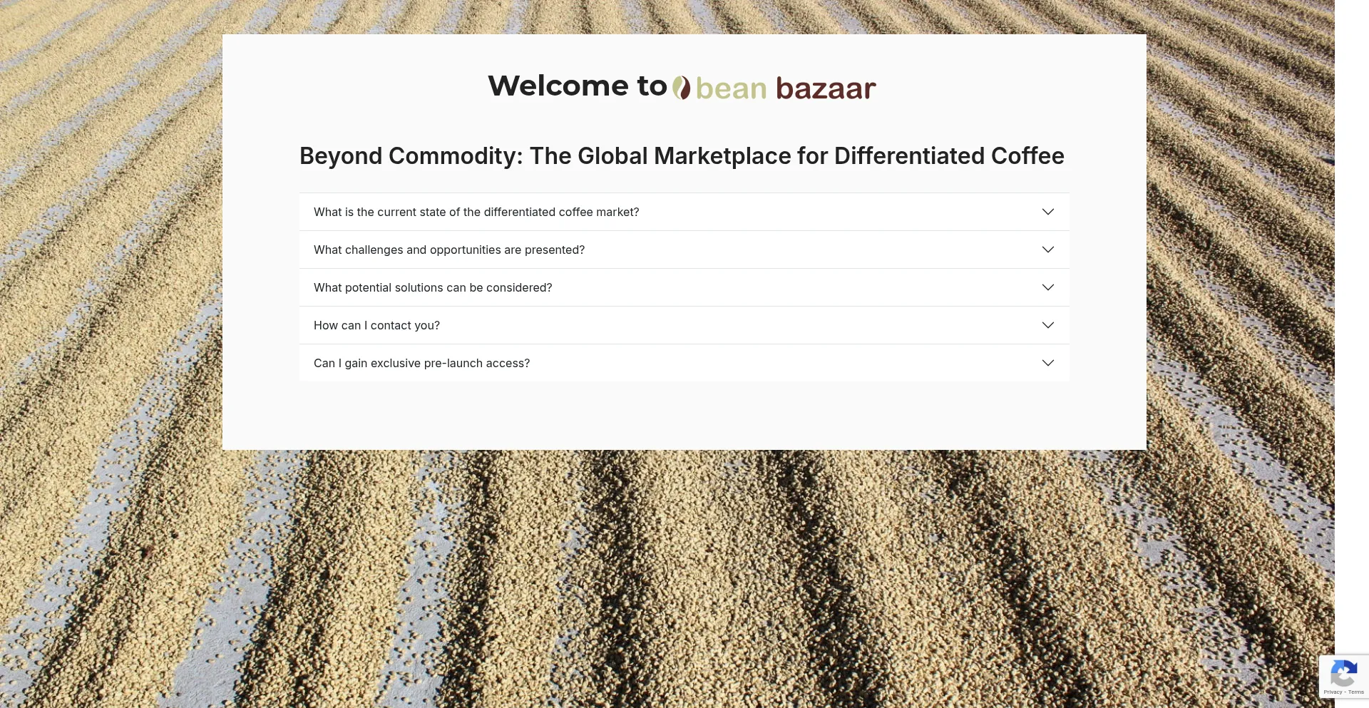 该网站实现数据收集表单,请求个人信息,包括姓名、电子邮件地址、电话号码或其他敏感详细信息。用户应验证 beanbazaar.com 的合法性并在提交个人数据前查看隐私政策。