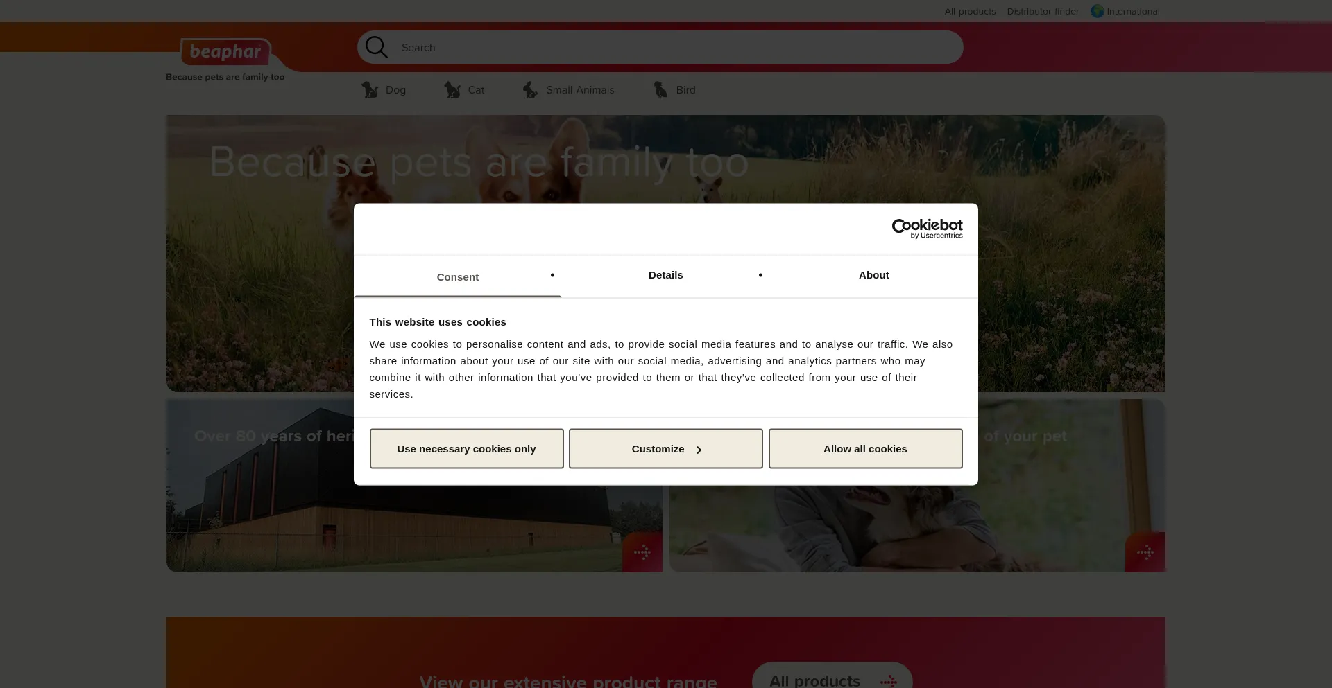 该网站实现符合GDPR或CCPA等隐私法规的cookie同意机制。这表明 beaphar.com 遵守数据保护标准并为用户提供对个人数据收集实践的控制。