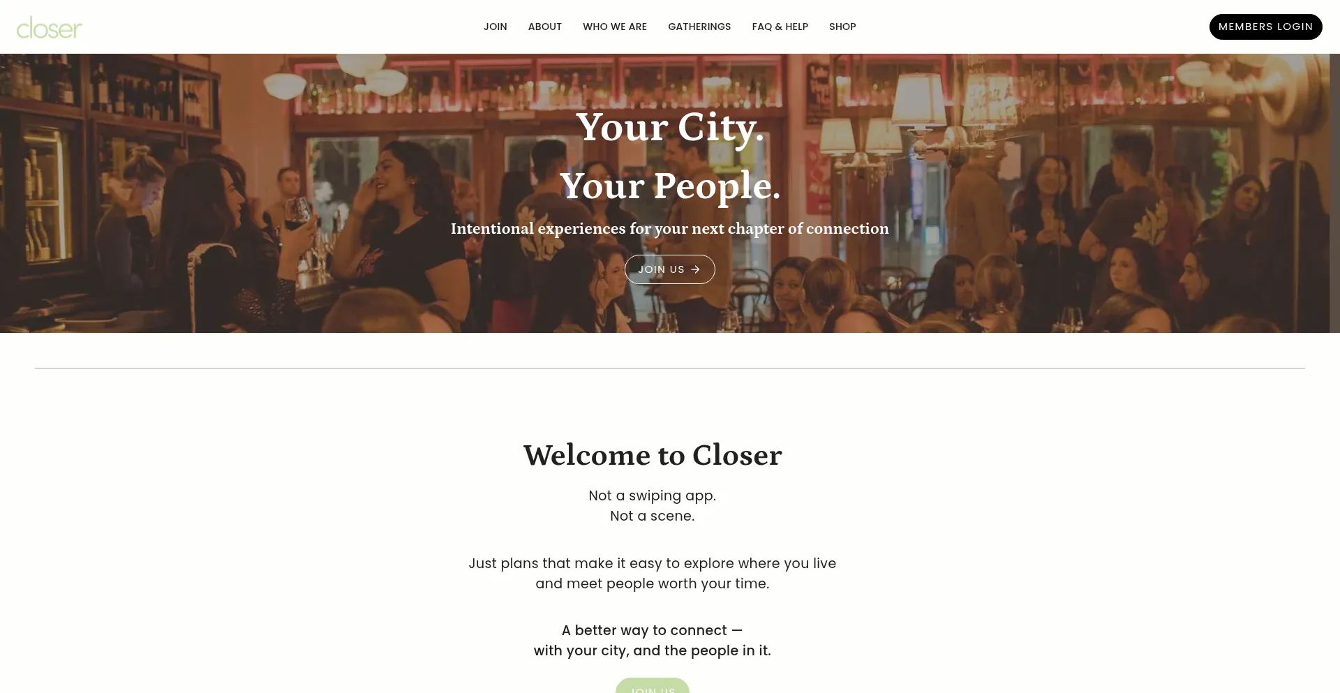 Closer is a platform designed to remove the barriers to authentic connection, bringing people together for meaningful experiences and belonging.