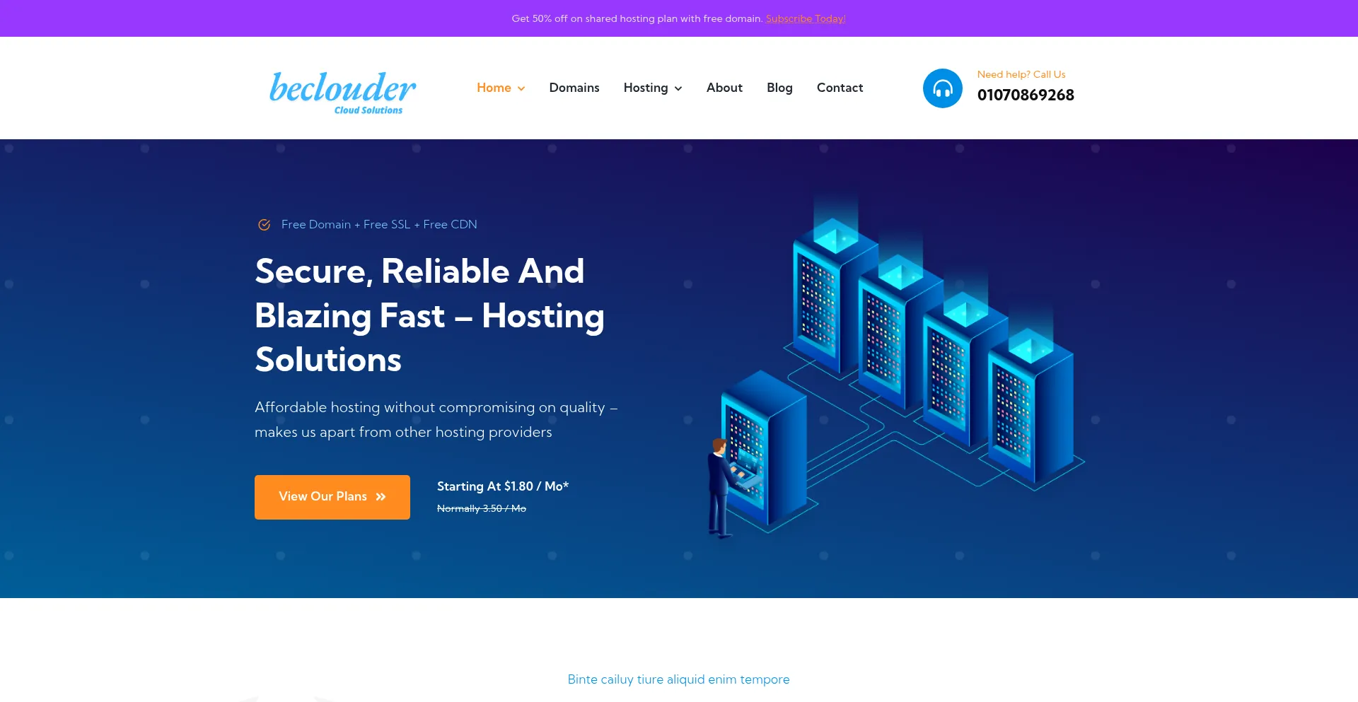 Free Domain + Free SSL + Free CDN secure, reliable and blazing fast – hosting solutions Affordable hosting without compromising on quality – makes us apart from other host...