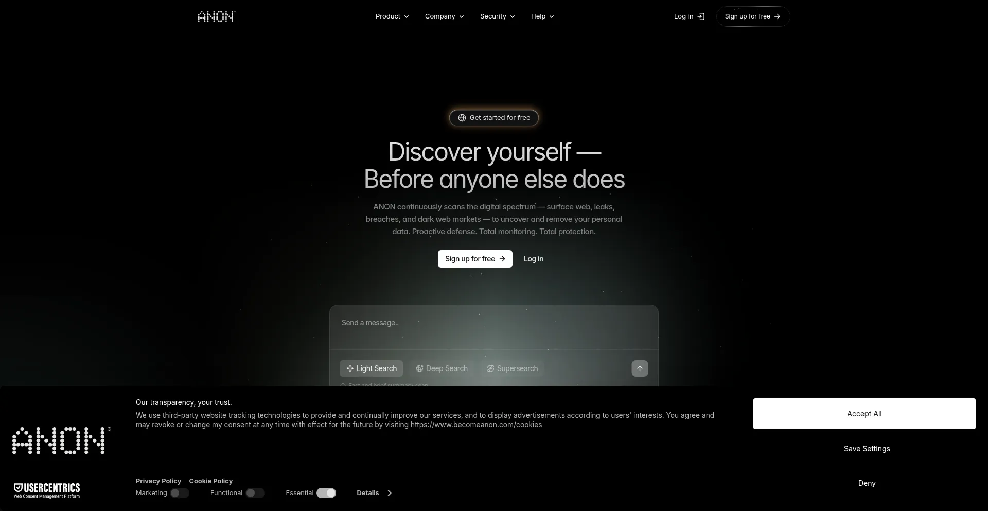 World-class online privacy suite for investigation & proactive defense. Gain total control over your digital footprint. Sign up for free today.