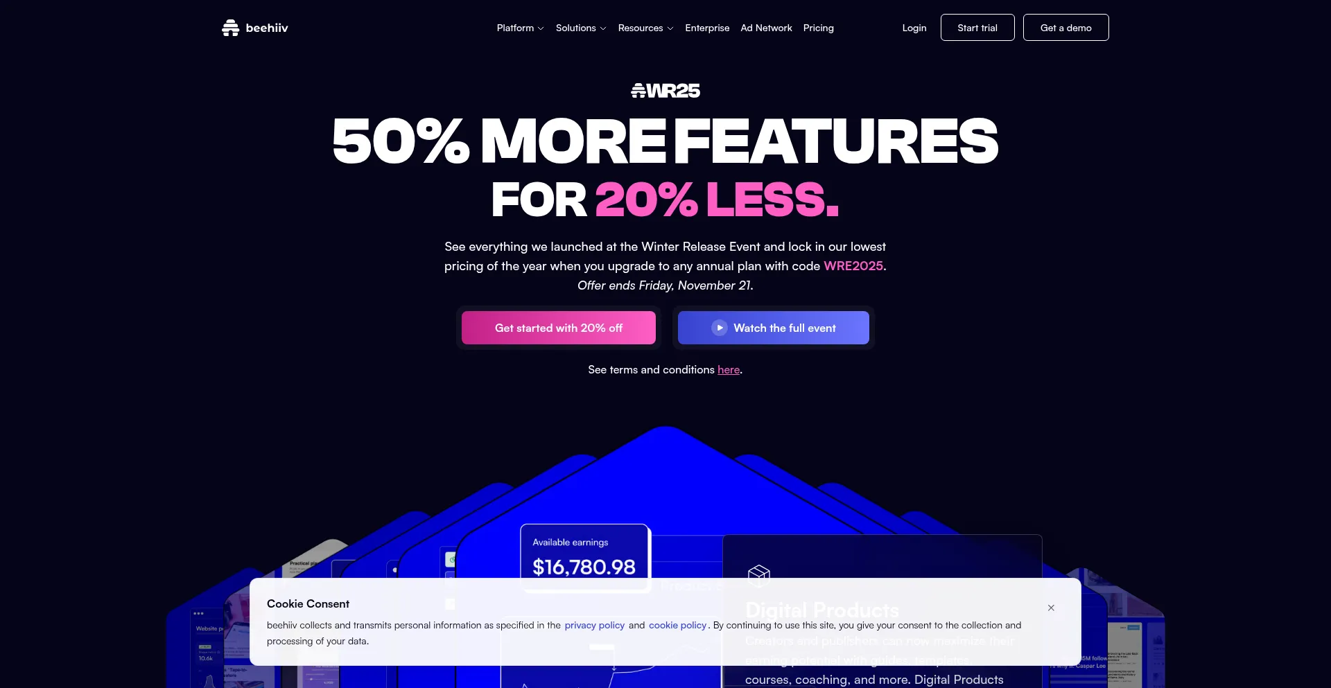 该网站实现符合GDPR或CCPA等隐私法规的cookie同意机制。这表明 beehiiv.com 遵守数据保护标准并为用户提供对个人数据收集实践的控制。
