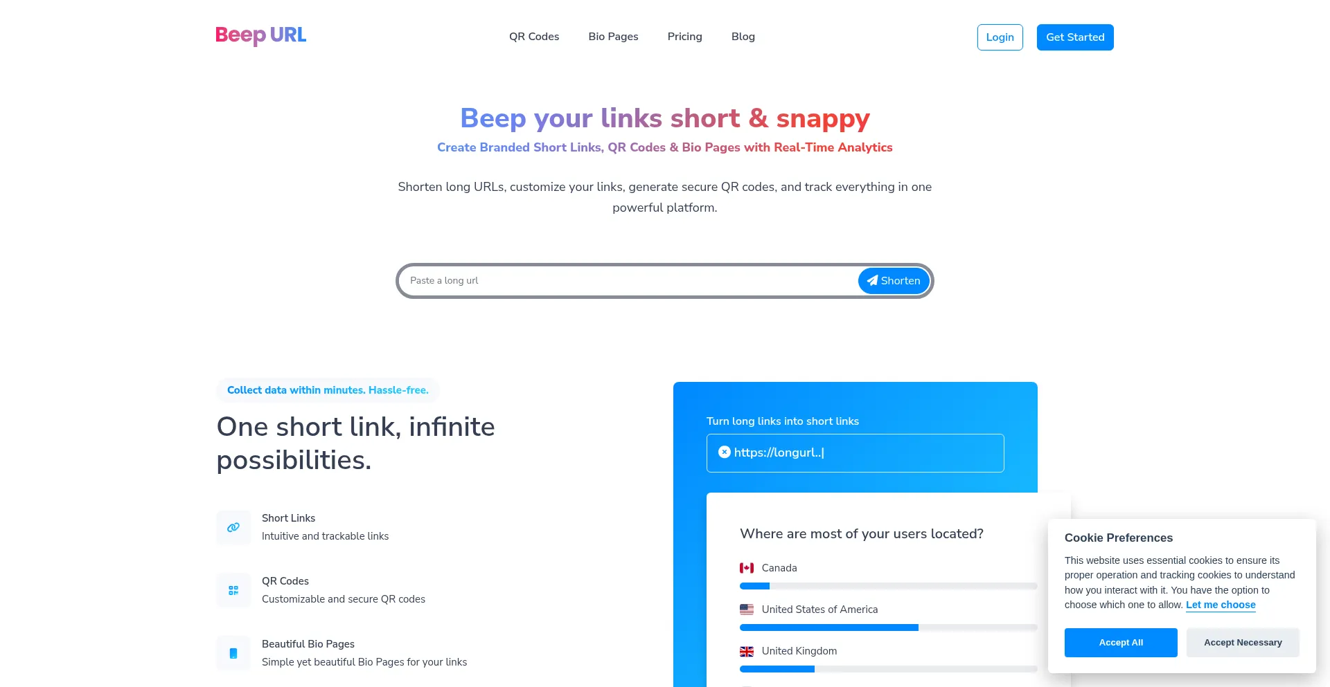 URL Shortener & QR Code Generator with Analytics - Beep URL
