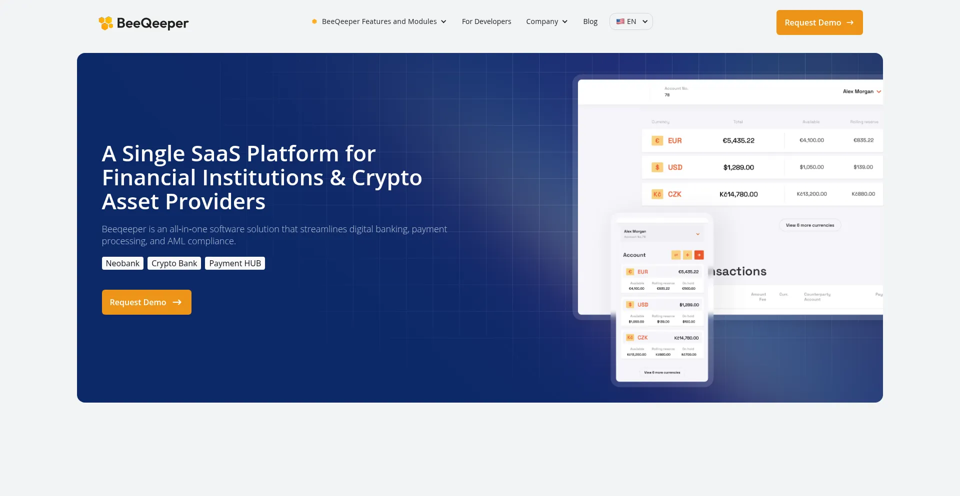 Beekeeper is a secure banking and payment processing software that simplifies digital banking, AML compliance, and payment operations.