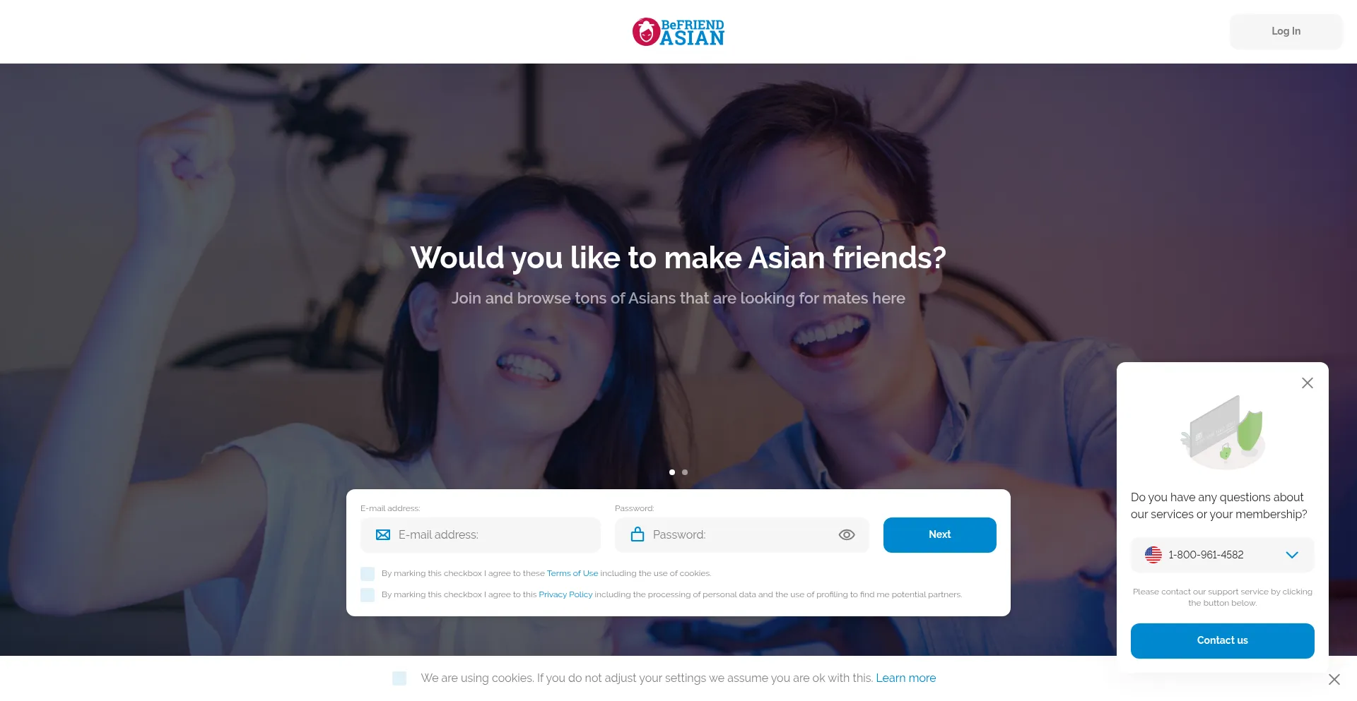 该网站实现数据收集表单,请求个人信息,包括姓名、电子邮件地址、电话号码或其他敏感详细信息。用户应验证 befriendasian.com 的合法性并在提交个人数据前查看隐私政策。