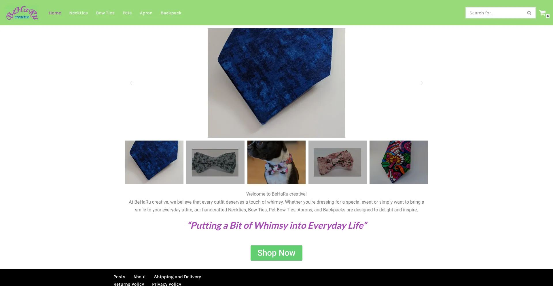 Unique fabric accessories, neckties, bow ties, and pet bow ties.