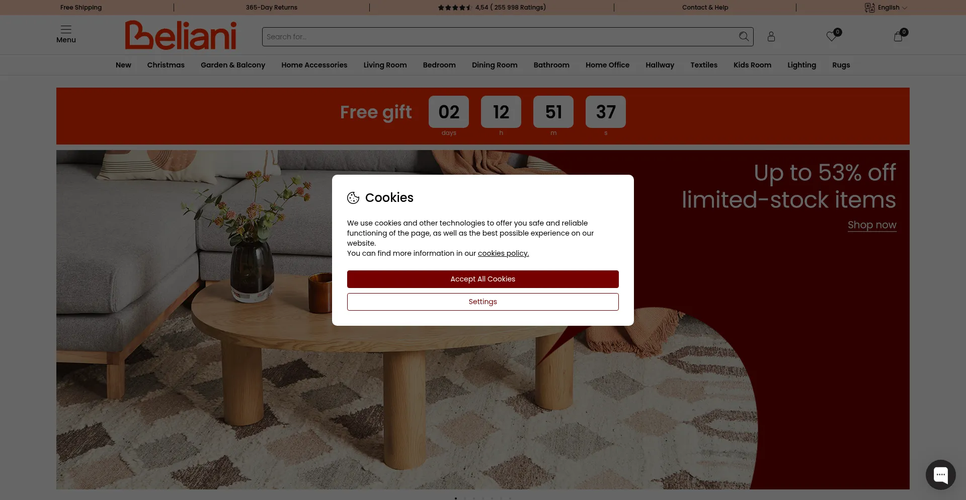 该网站实现符合GDPR或CCPA等隐私法规的cookie同意机制。这表明 beliani.no 遵守数据保护标准并为用户提供对个人数据收集实践的控制。