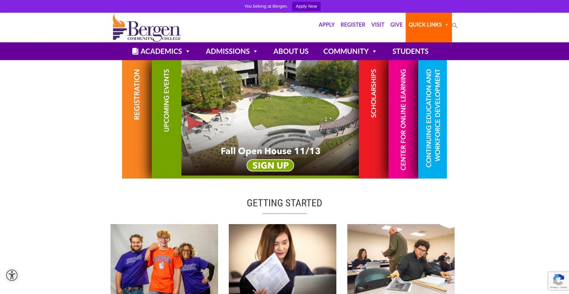 该网站实现数据收集表单,请求个人信息,包括姓名、电子邮件地址、电话号码或其他敏感详细信息。用户应验证 bergen.edu 的合法性并在提交个人数据前查看隐私政策。