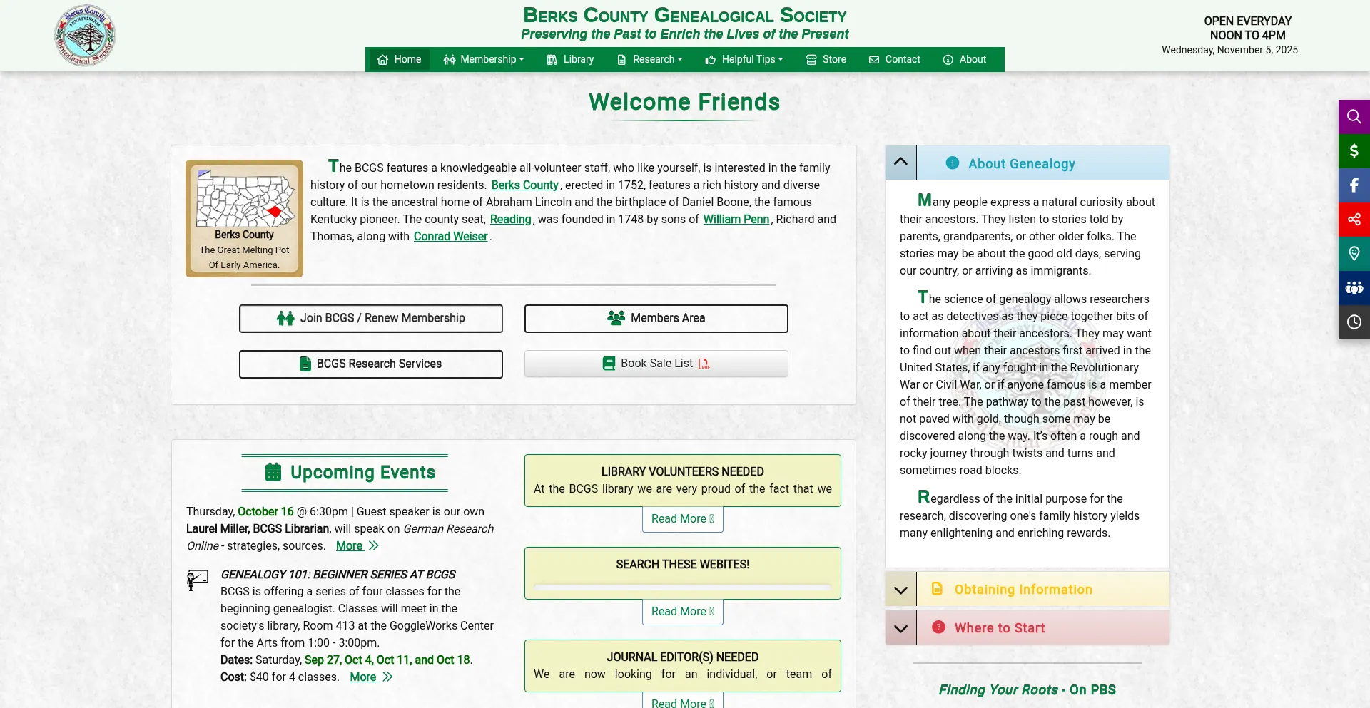 Berks County (PA) Genealogical Society | Pennsylvania Family History / Genealogy / Ancestry
