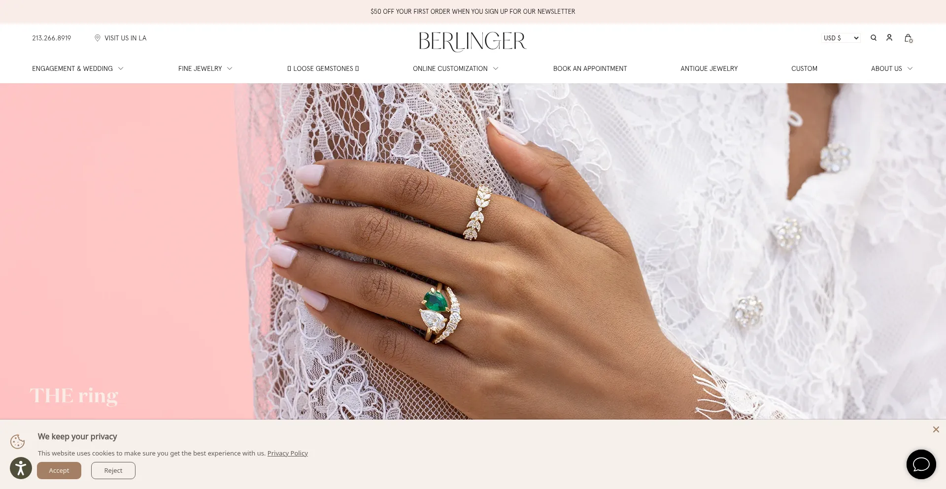 该网站实现数据收集表单,请求个人信息,包括姓名、电子邮件地址、电话号码或其他敏感详细信息。用户应验证 berlingerjewelry.com 的合法性并在提交个人数据前查看隐私政策。
