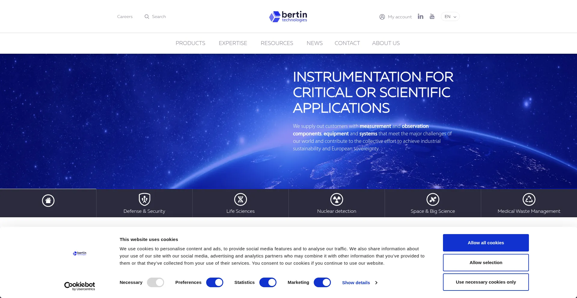 该网站实现符合GDPR或CCPA等隐私法规的cookie同意机制。这表明 bertin-technologies.fr 遵守数据保护标准并为用户提供对个人数据收集实践的控制。