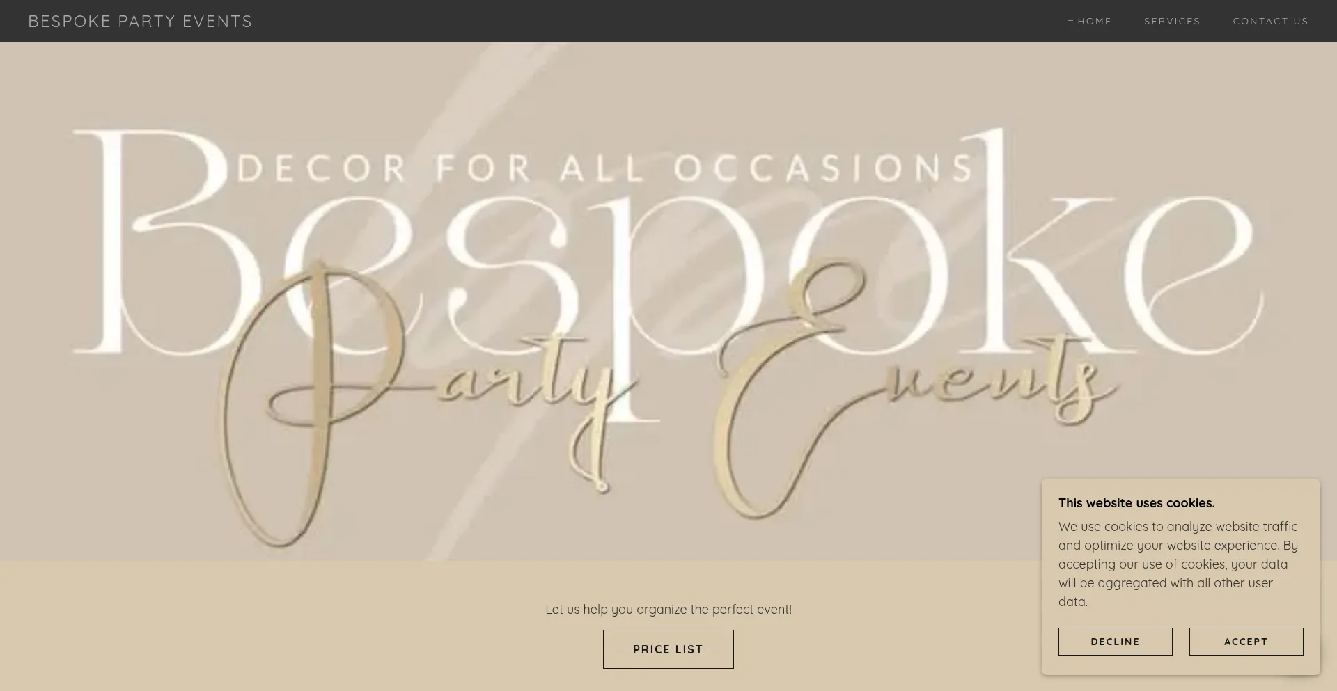 该网站实现符合GDPR或CCPA等隐私法规的cookie同意机制。这表明 bespokepartyevents.godaddysites.com 遵守数据保护标准并为用户提供对个人数据收集实践的控制。