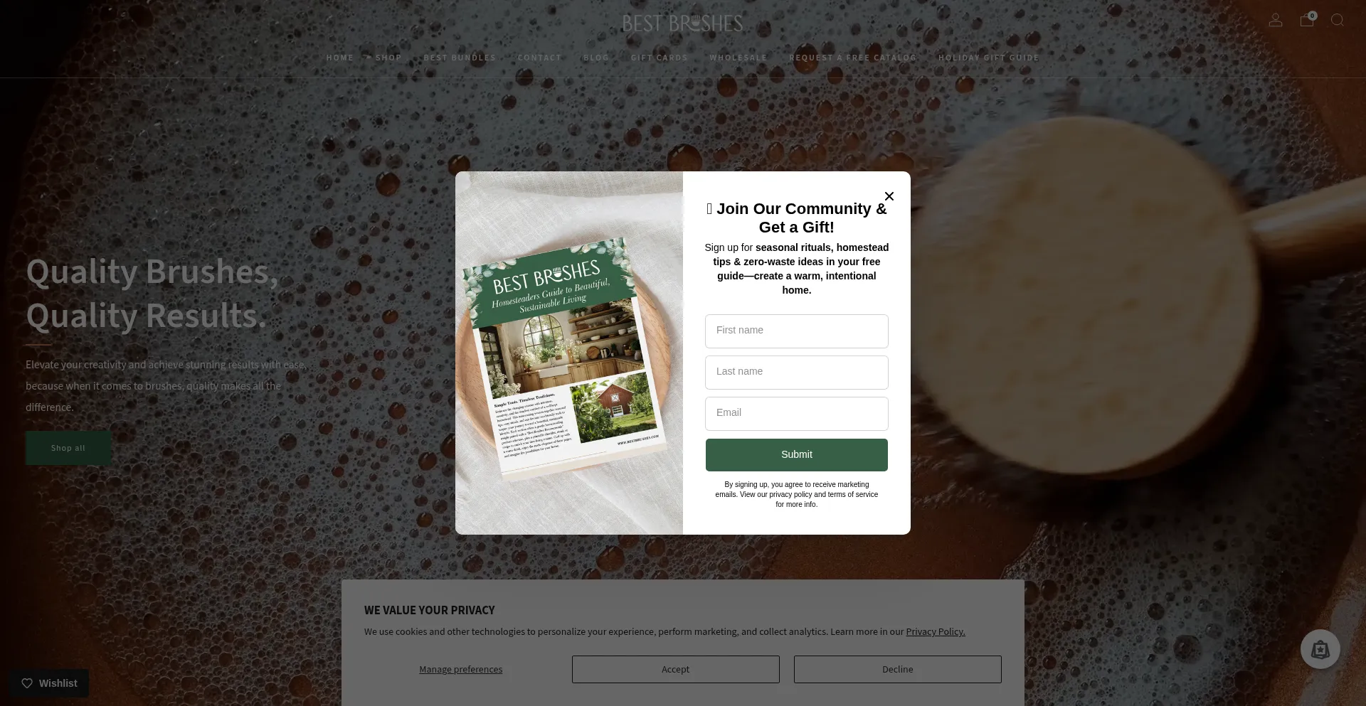 该网站实现符合GDPR或CCPA等隐私法规的cookie同意机制。这表明 bestbrushes.com 遵守数据保护标准并为用户提供对个人数据收集实践的控制。