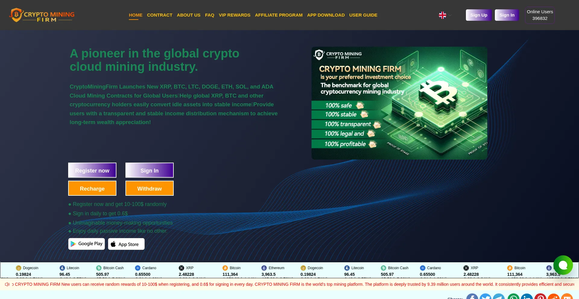 Cryptominingfirm is a cloud mining service provider with a clear mission: to provide users with remote mining services for cryptocurrency. Whether it is Bitcoin, Dogecoin, Litec...
