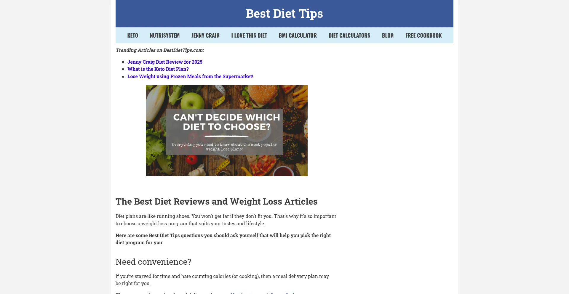 Best Diet Tips provides reviews, ratings, and prices for top diet plans along with the latest weight loss advice and health articles about dieting.
