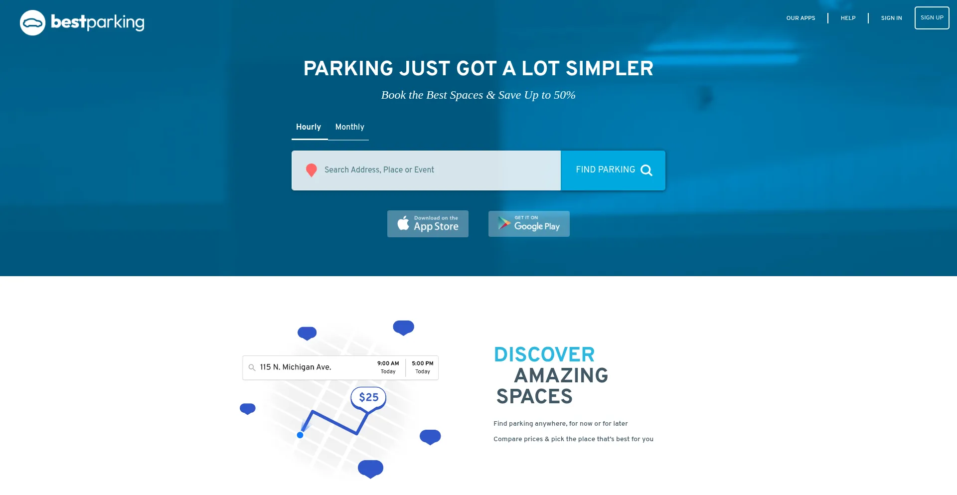 Use BestParking to book parking spaces in cities like Chicago & New York, as well as airport parking, stadium & event parking, or daily & monthly parking.