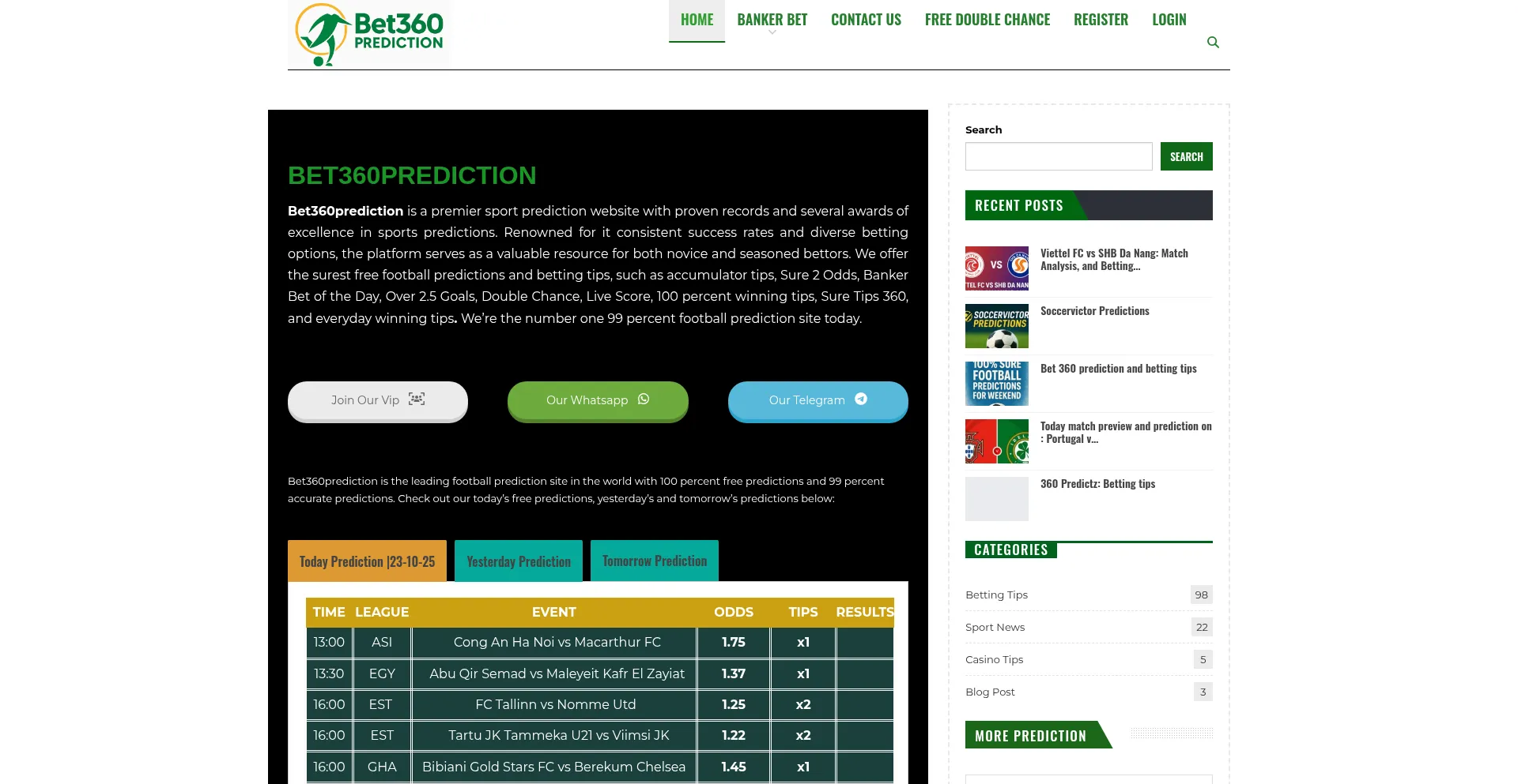 Bet360prediction is a premier sport prediction website with proven records and several awards of excellence in sports predictions.
